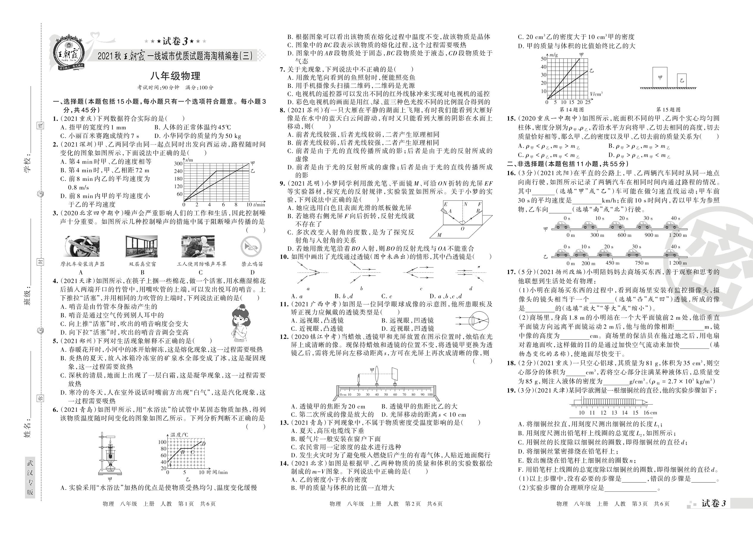 2021秋王朝霞一线城市优质试题海淘精编卷(三)八年级上册物理(人教版)【3】