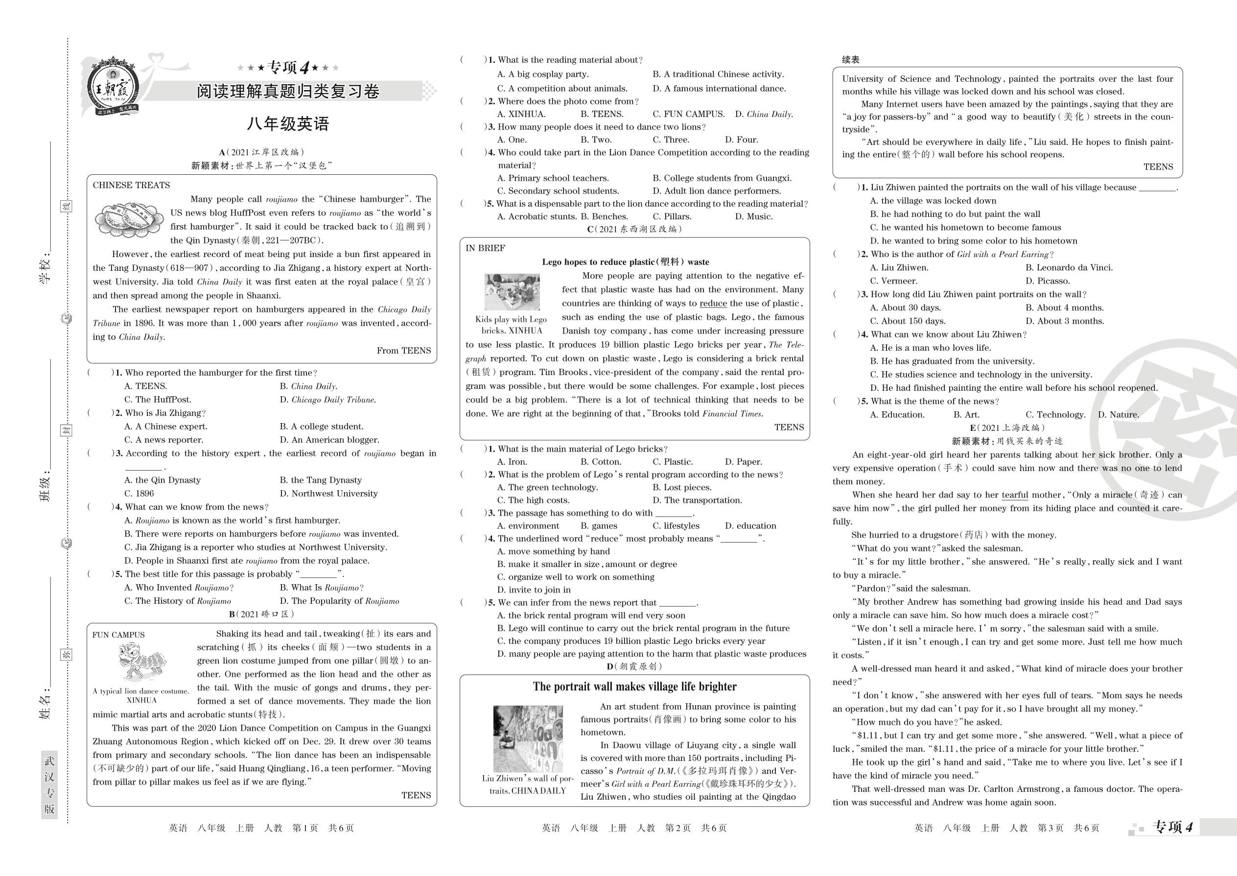 王朝霞期末专项卷——阅读理解真题归类复习卷八年级上册英语(人教版)_R220110093433103【4】