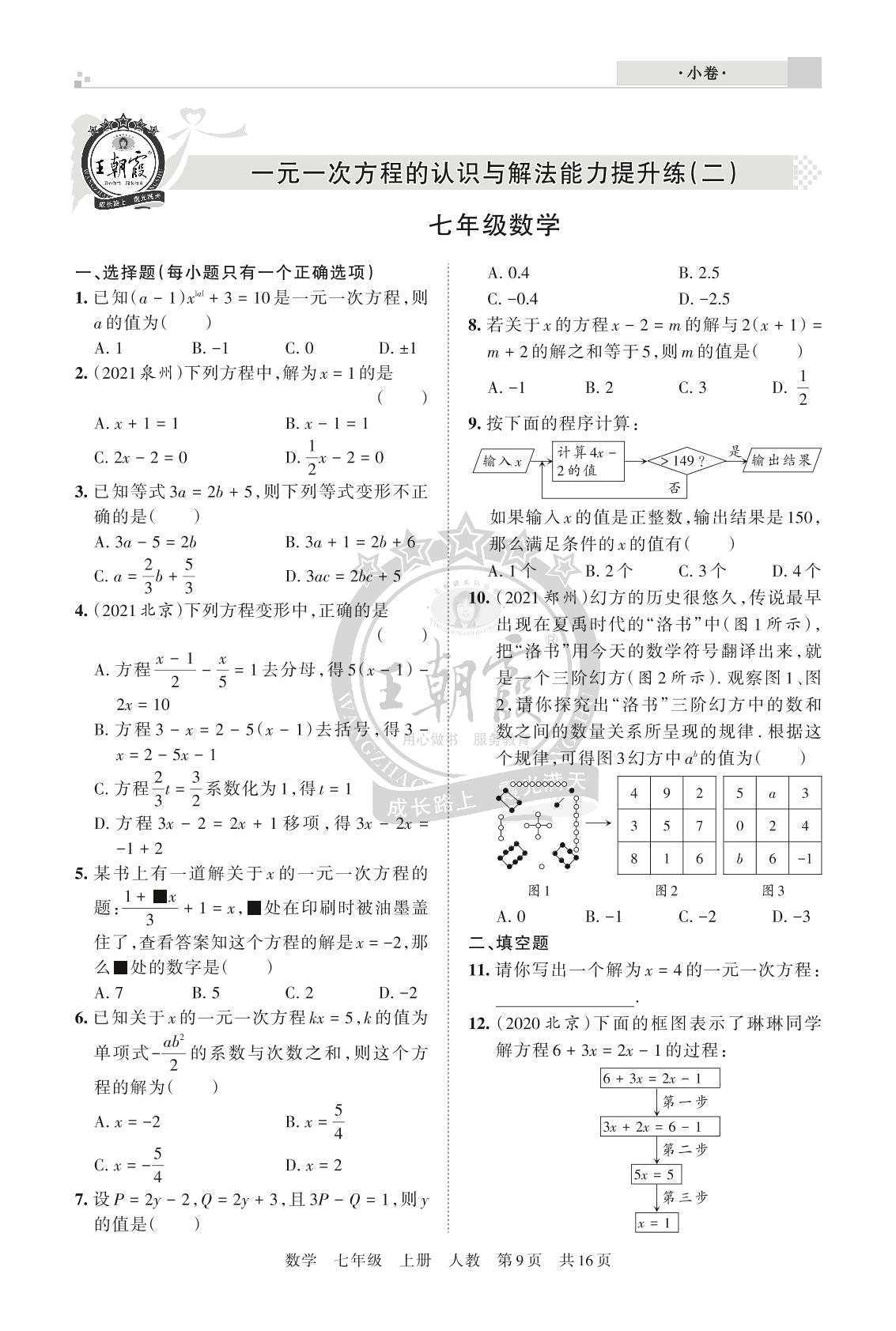 王朝霞期末小卷——一元一次方程的认识与解法能力提升练(二)七年级上册数学(人教版)【5】