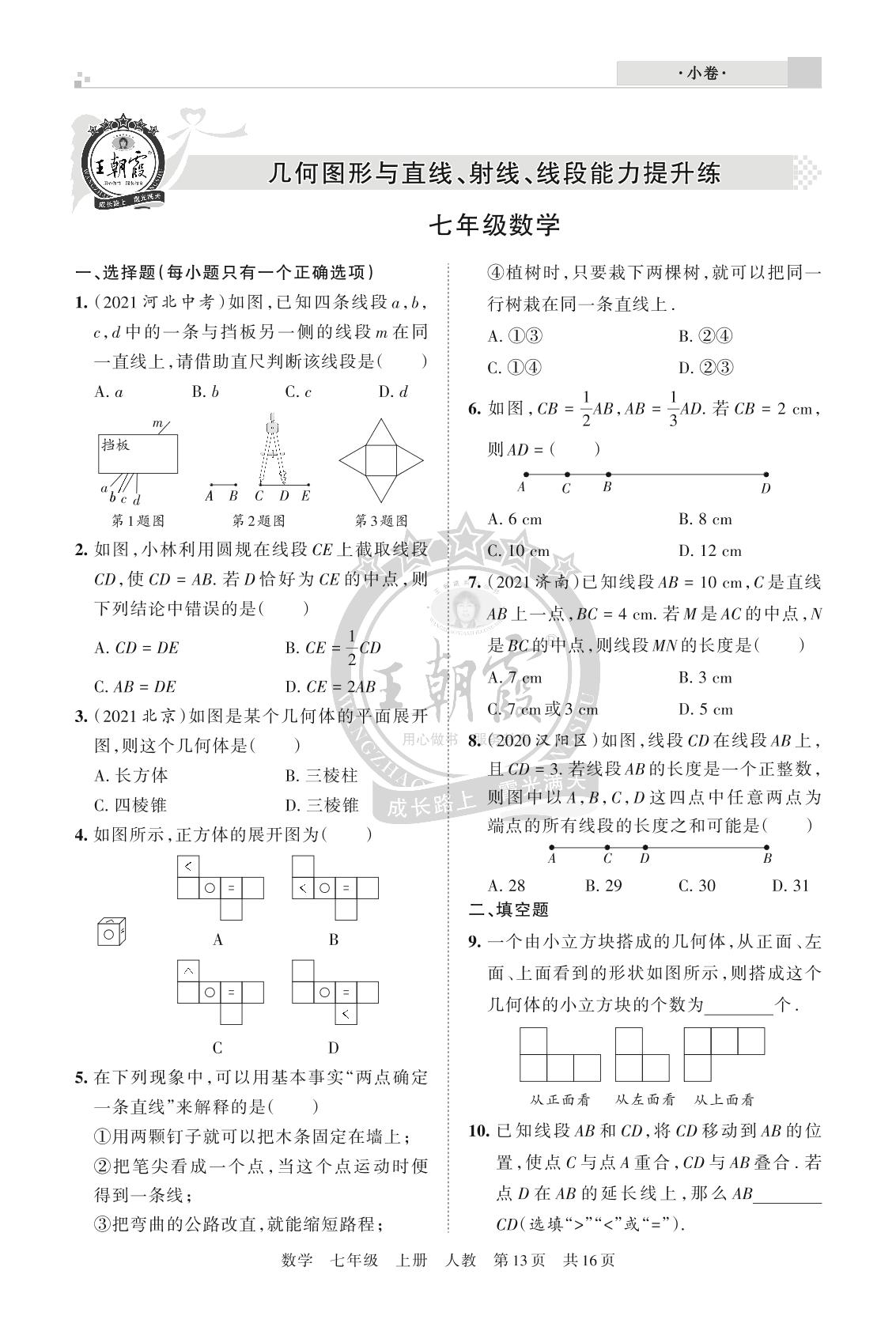 王朝霞期末小卷——几何图形与直线、射线、线段能力提升练七年级上册数学(人教版)【7】