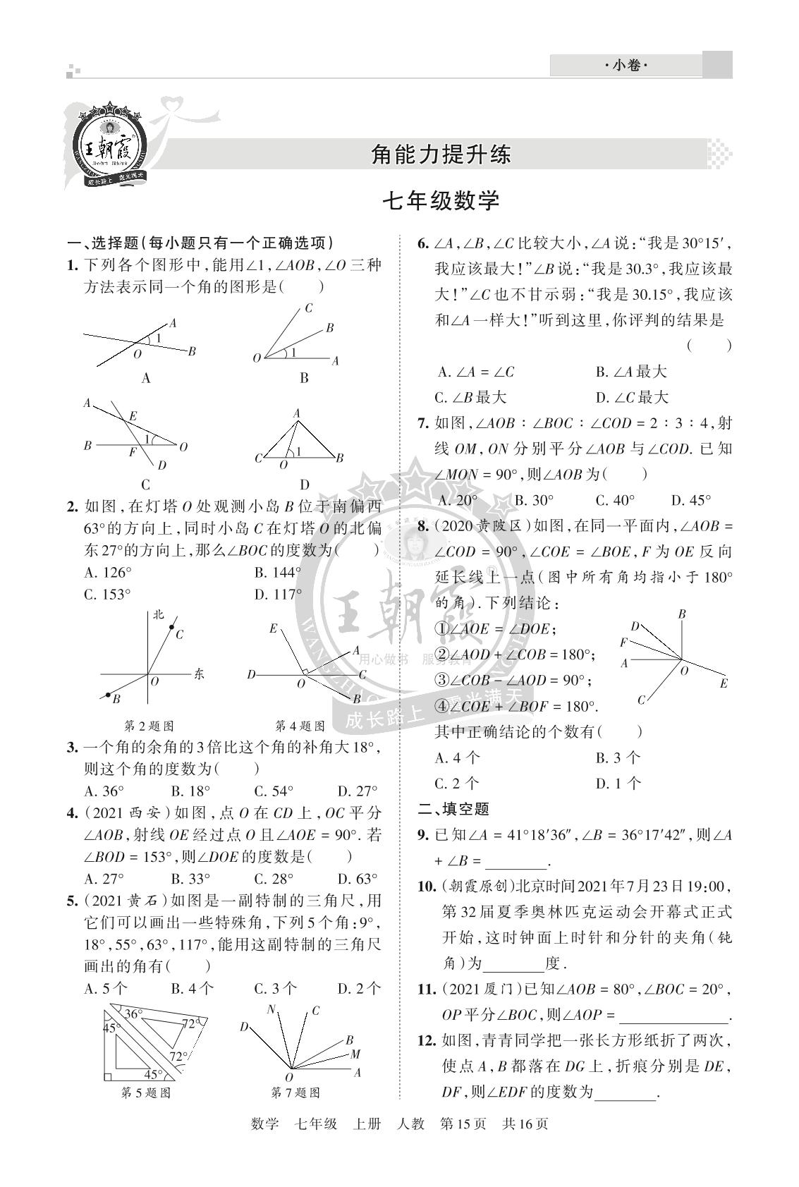 王朝霞期末小卷——角能力提升练七年级上册数学(人教版)【8】