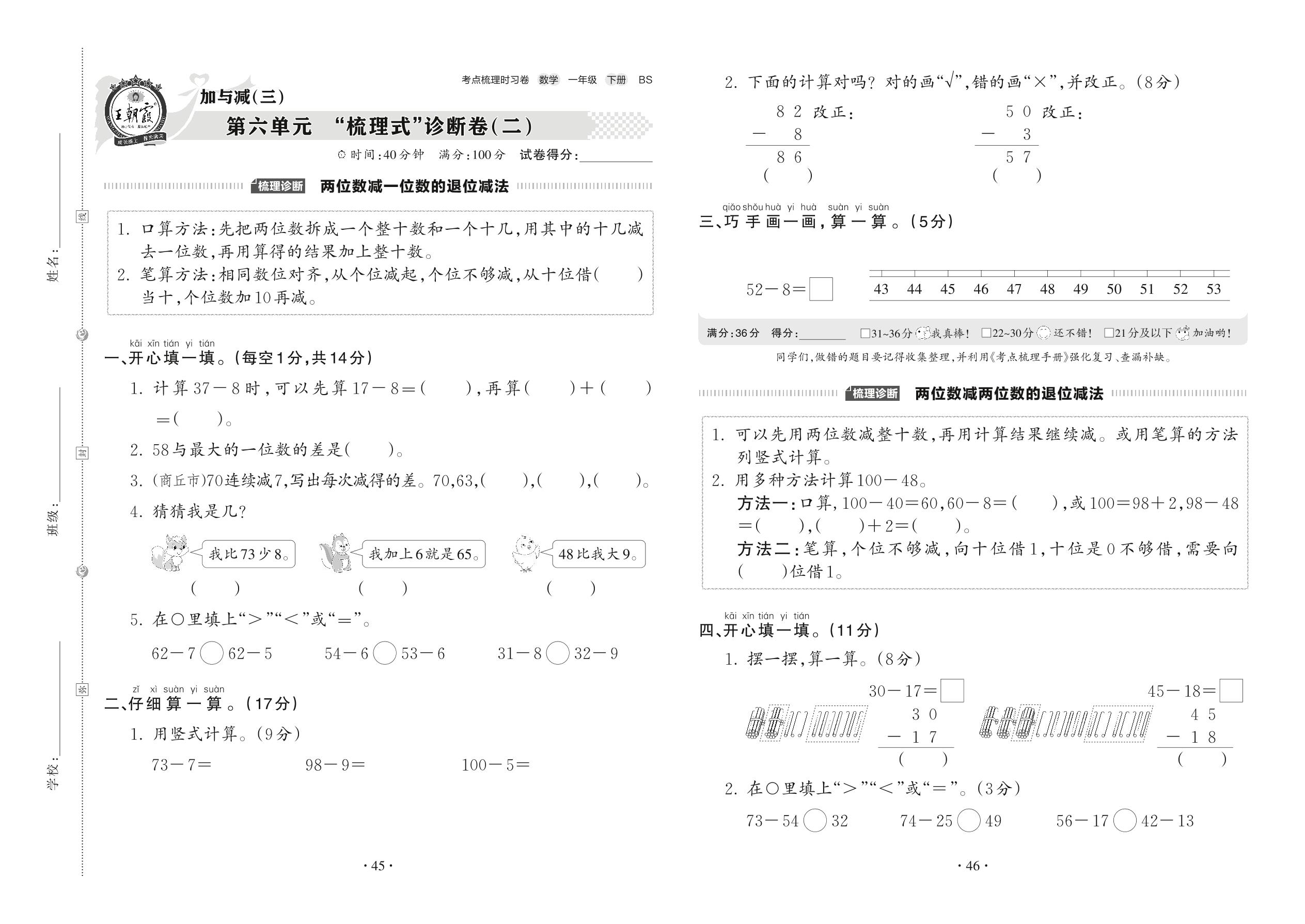 2022下册一年级数学北师版 第六单元 “梳理式”诊断卷(二)