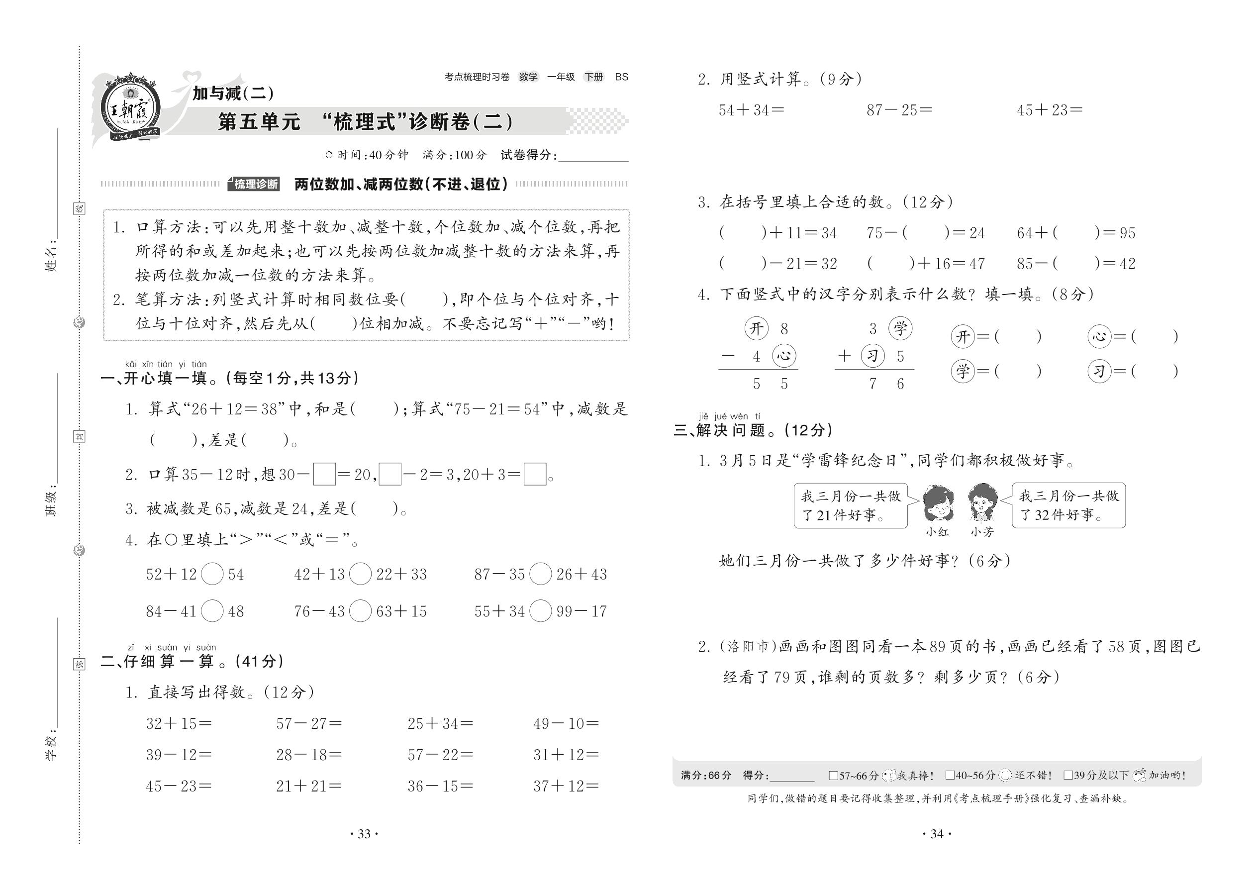 2022下册一年级数学北师版 第五单元 “梳理式”诊断卷(二)