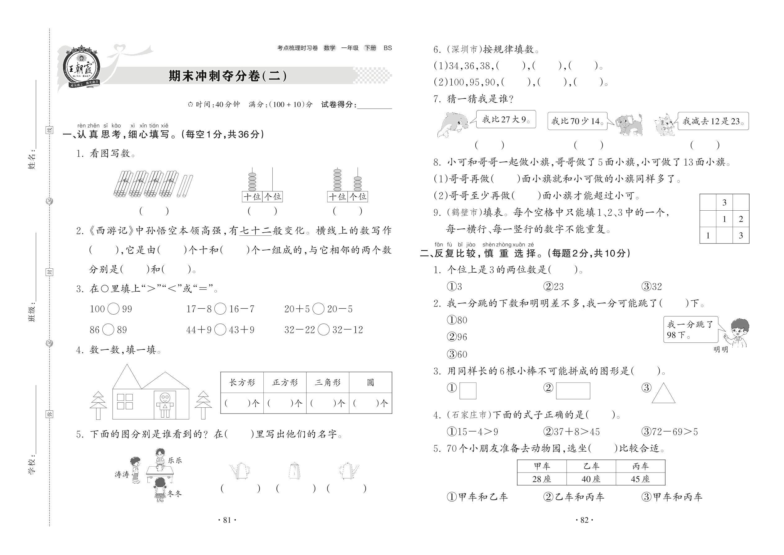 2022下册一年级数学北师版 期末冲刺夺分卷(二)