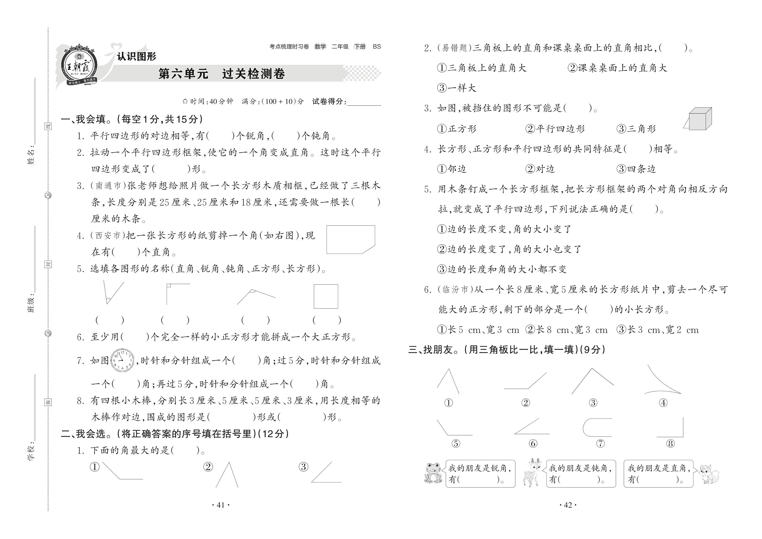 2022下册二年级数学北师版 第六单元 过关检测卷