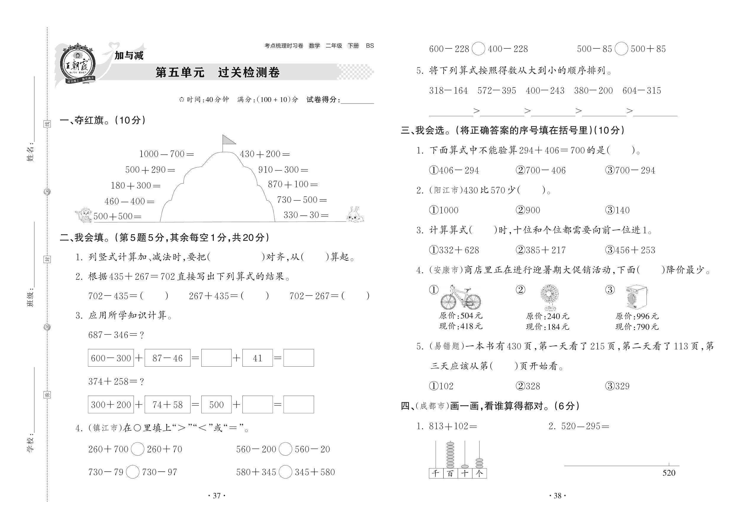 2022下册二年级数学北师版 第五单元 过关检测卷