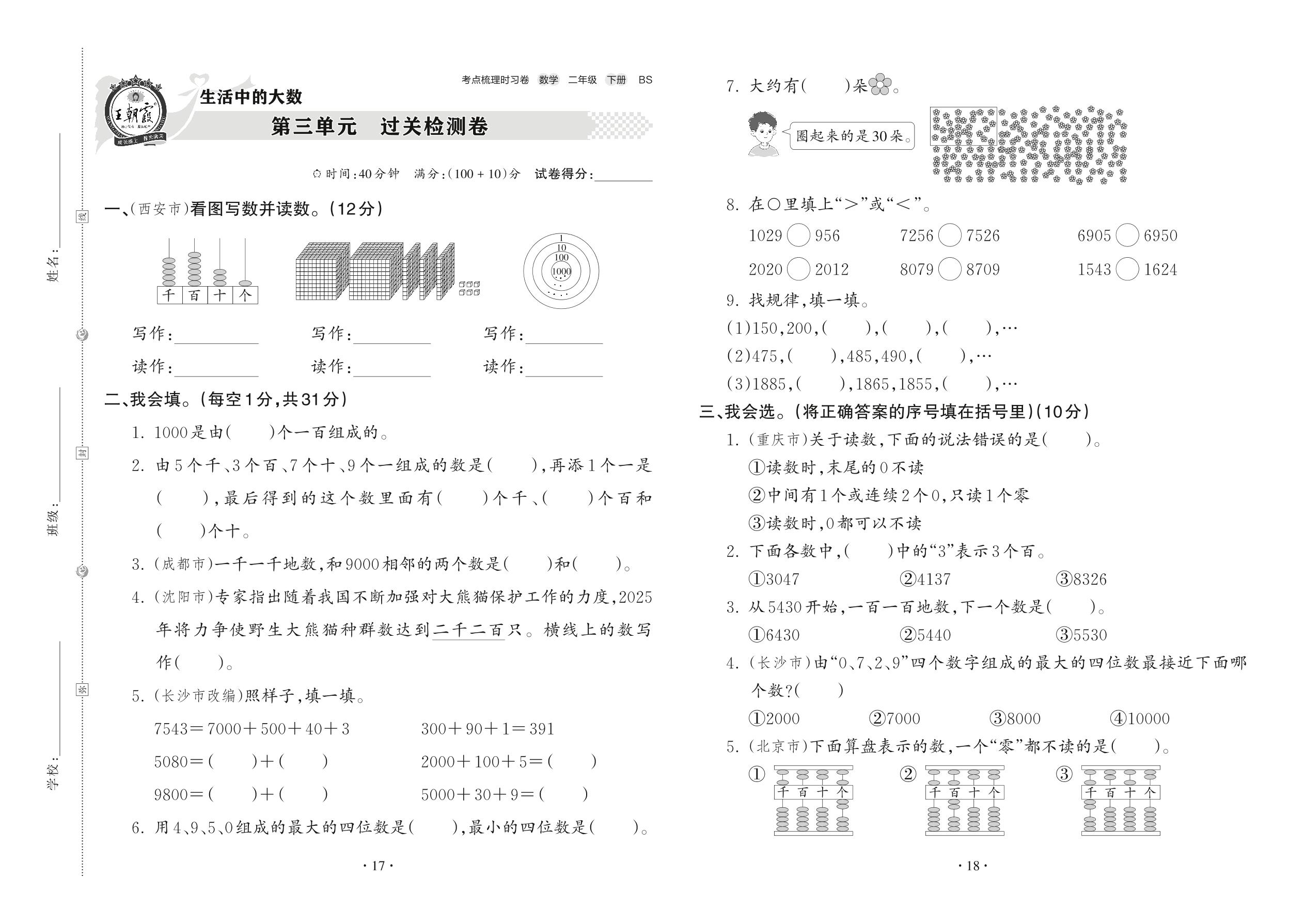 2022下册二年级数学北师版 第三单元 过关检测卷