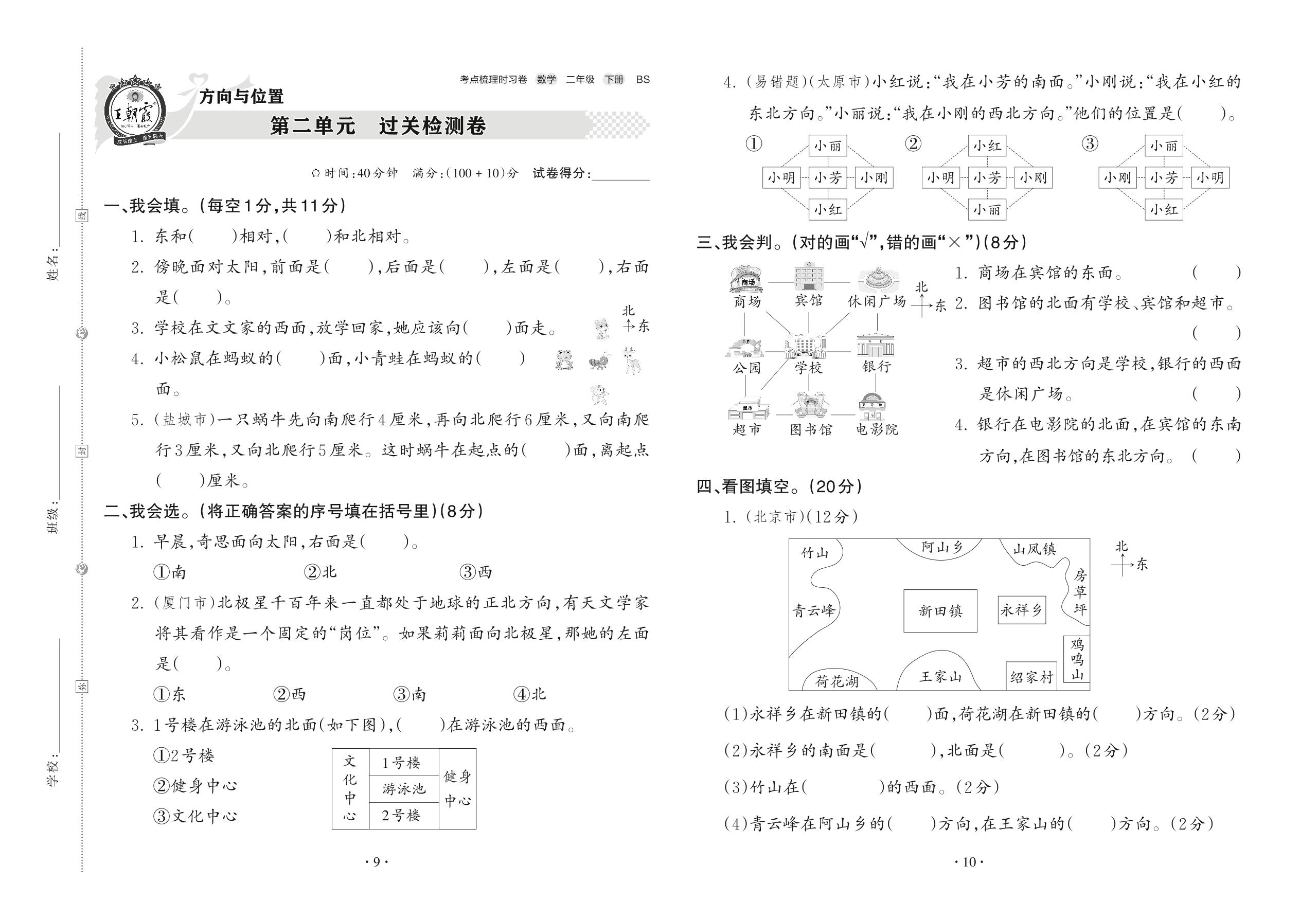 2022下册二年级数学北师版 第二单元 过关检测卷