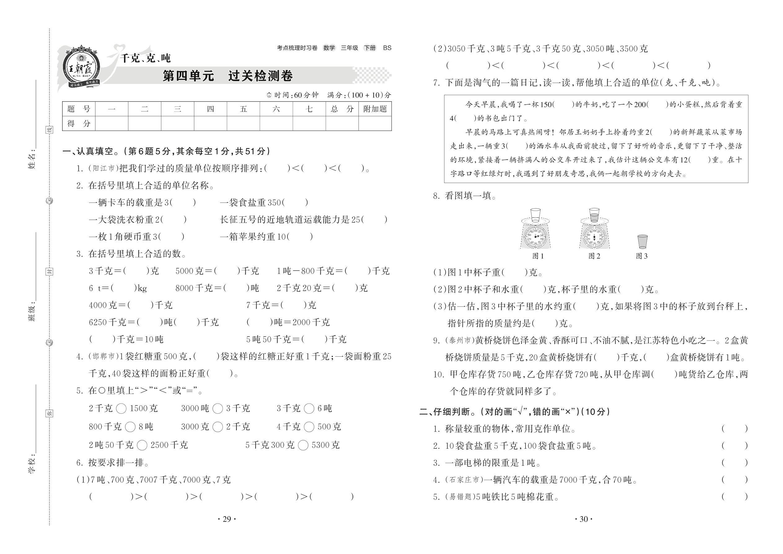 2022下册三年级数学北师版 第四单元 过关检测卷