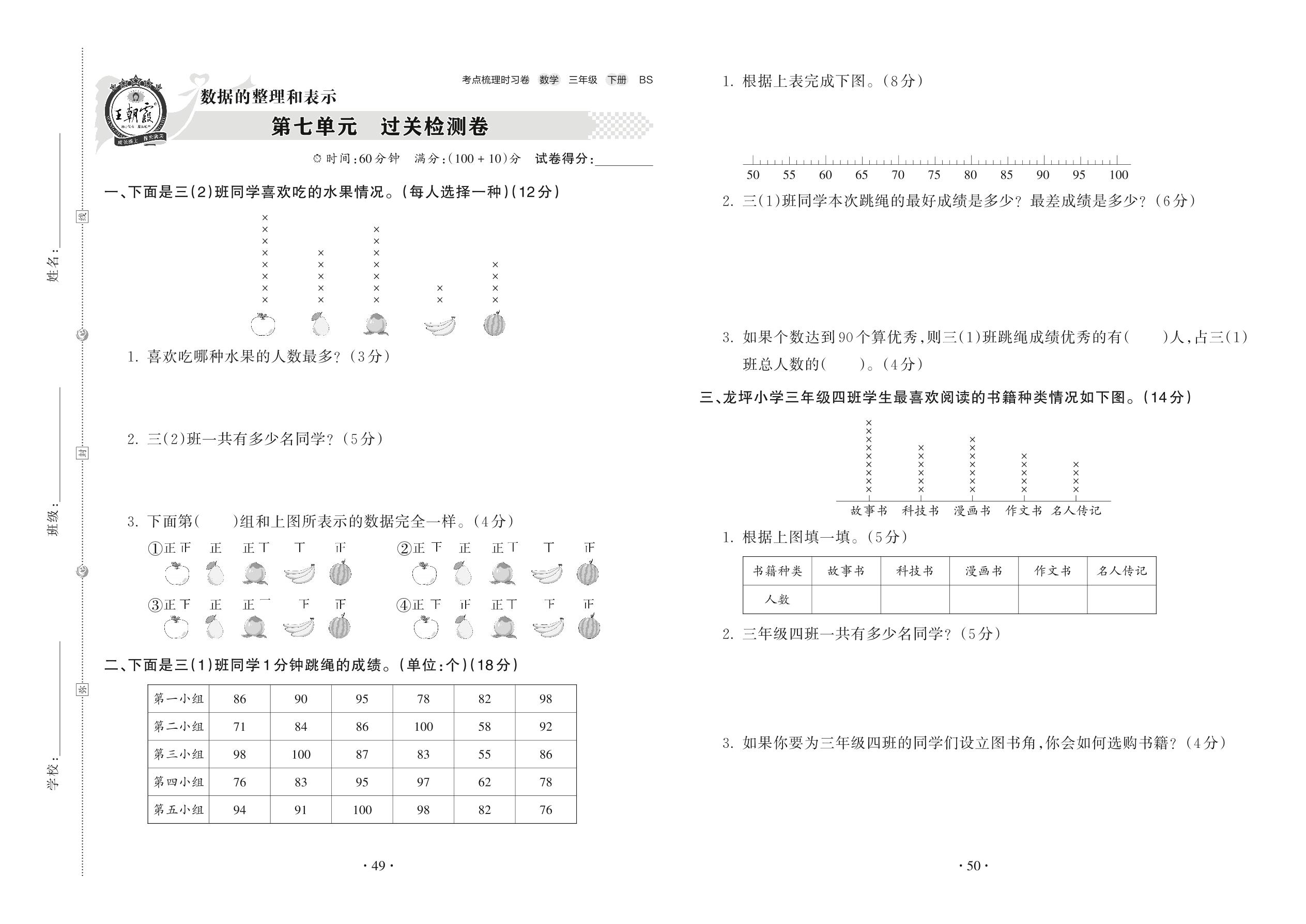 2022下册三年级数学北师版 第七单元 过关检测卷
