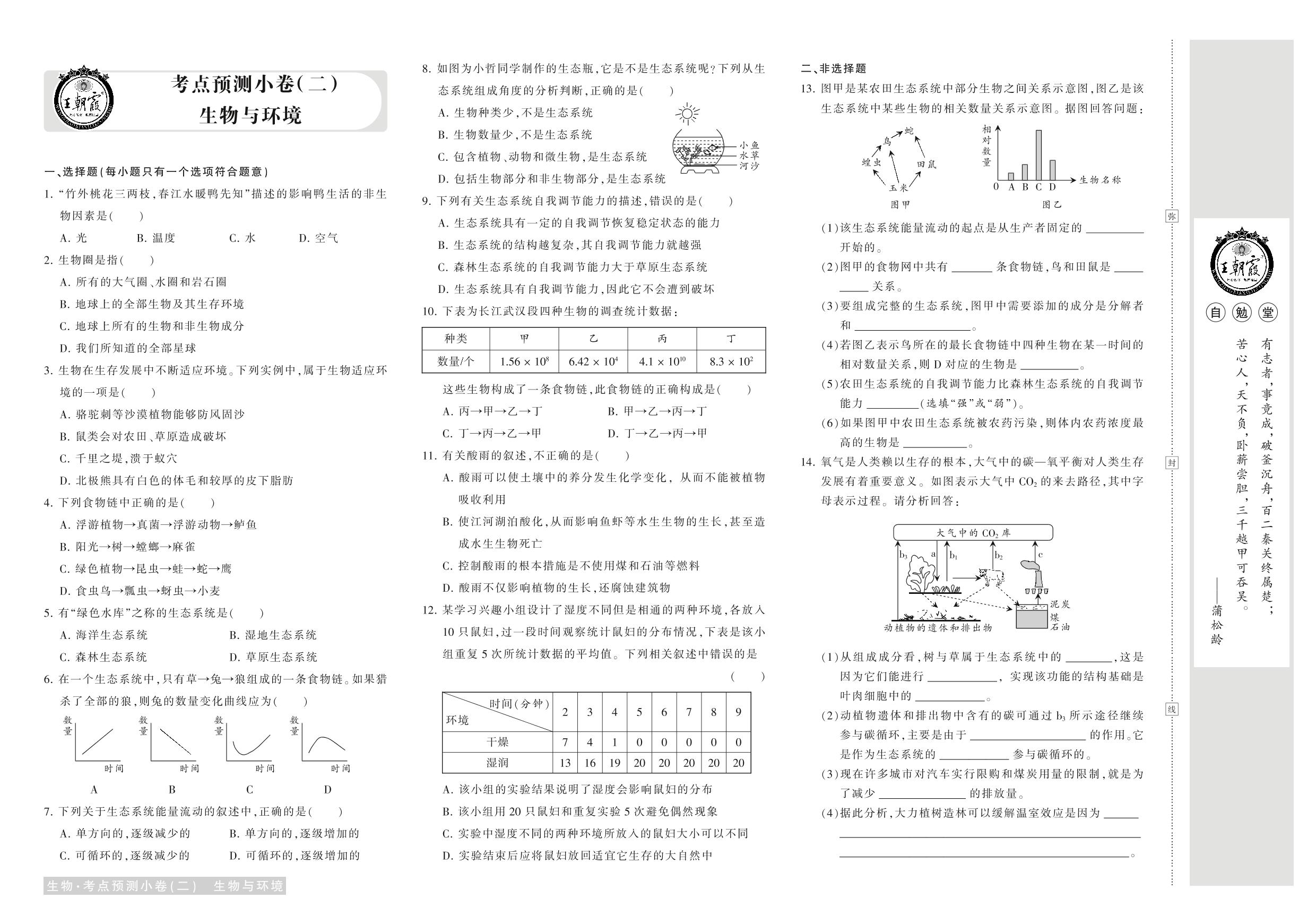 2018年河南中考生物考点预测小卷(二)生物与环境