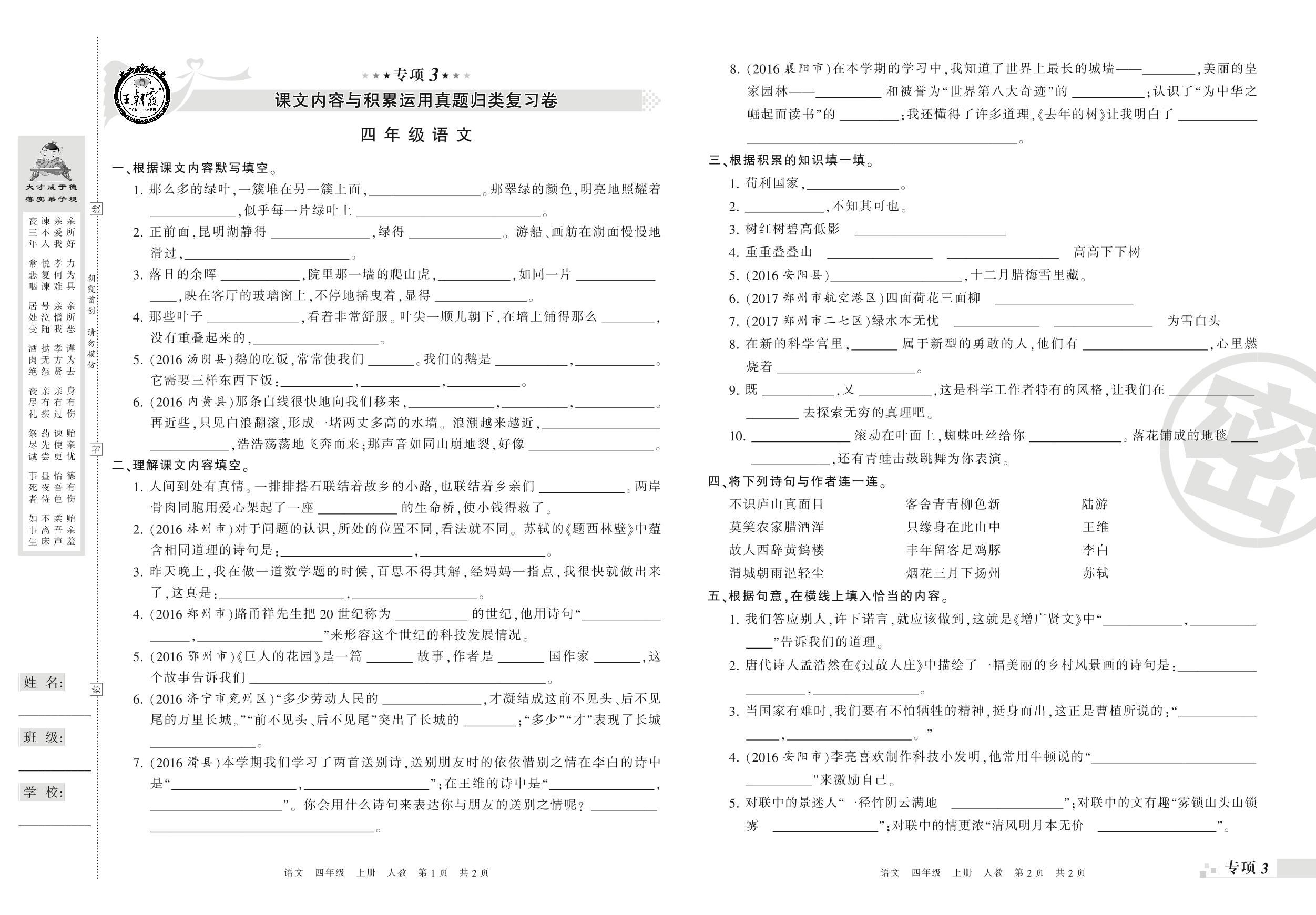 四年级语文人教版上册专项卷