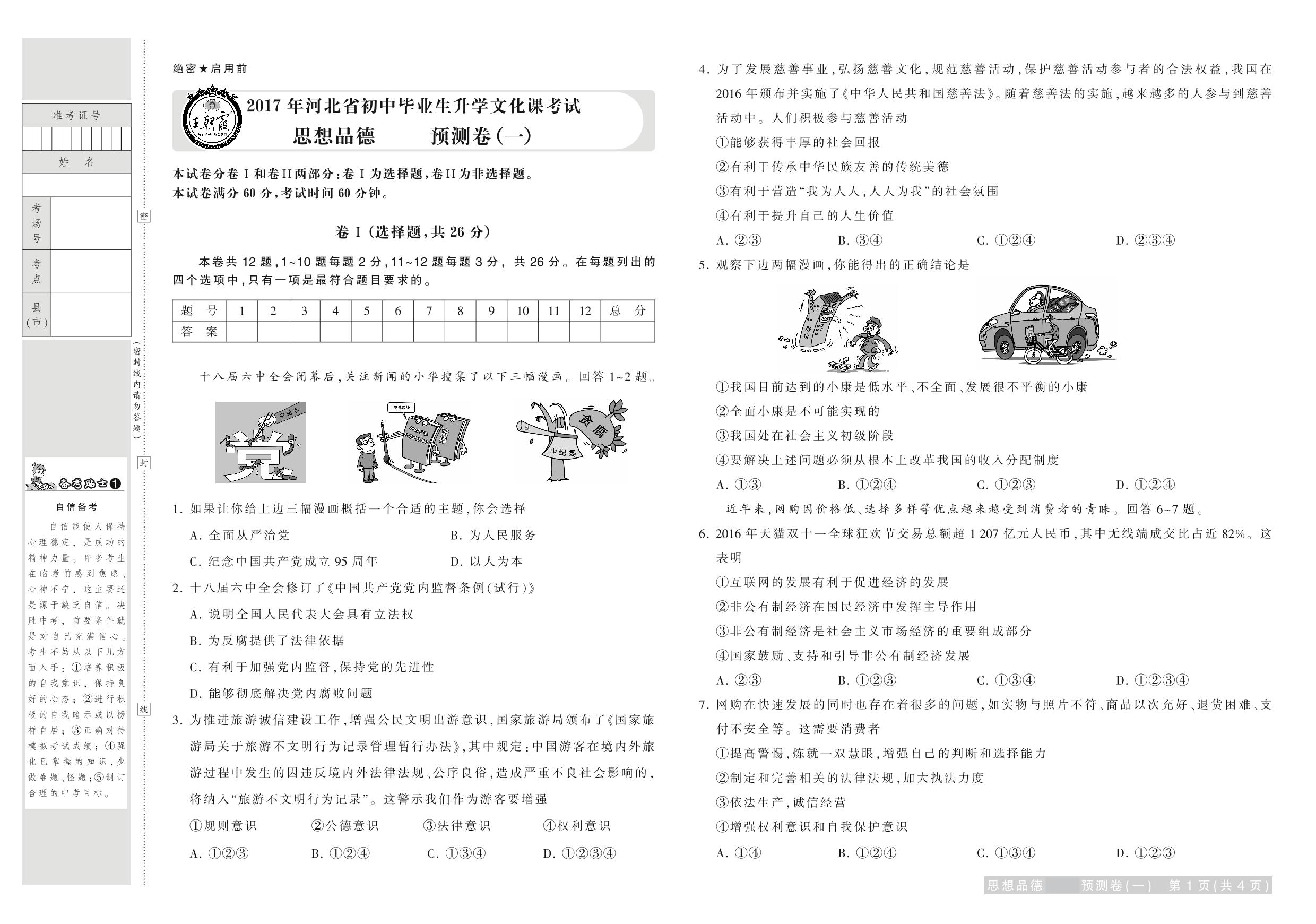 2017年河北省普通高中招生考试试卷道德与法治·预测卷(一)