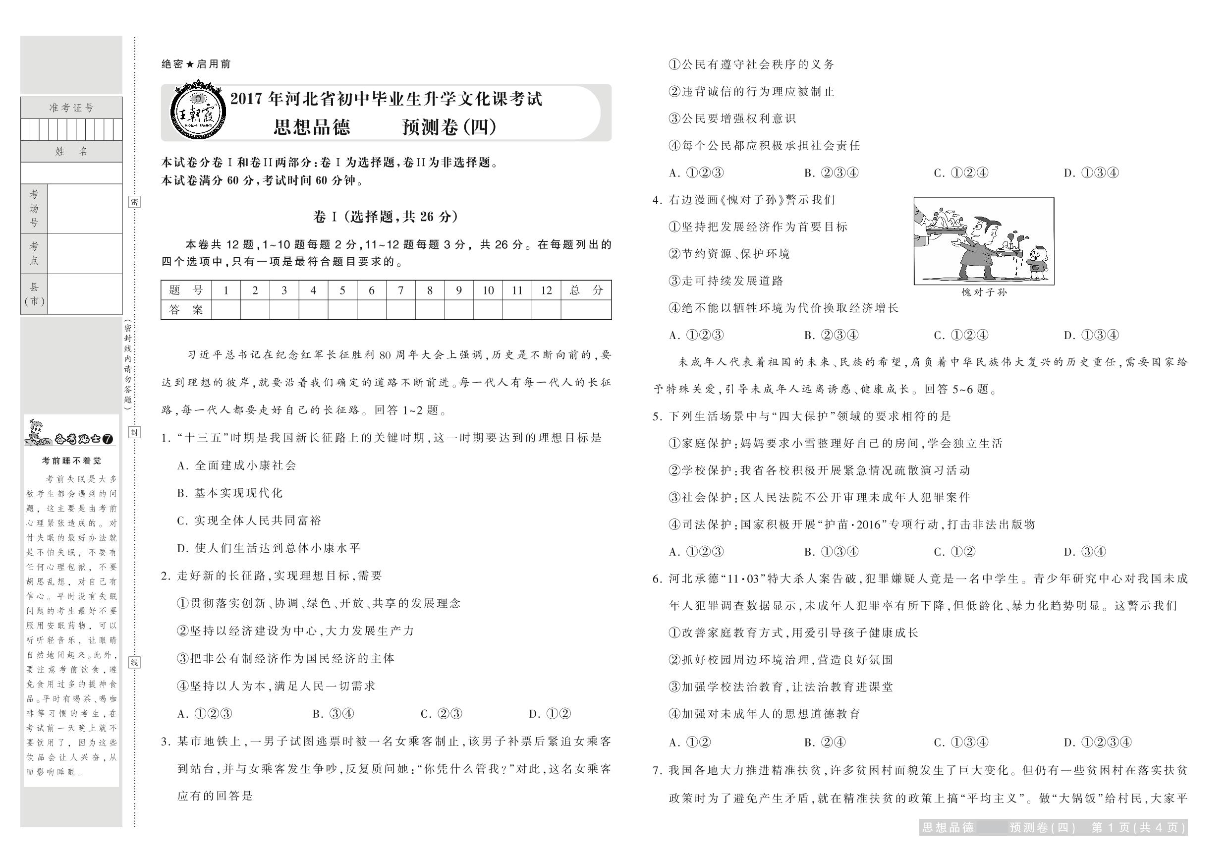 2017年河北省普通高中招生考试试卷道德与法治·预测卷(四)