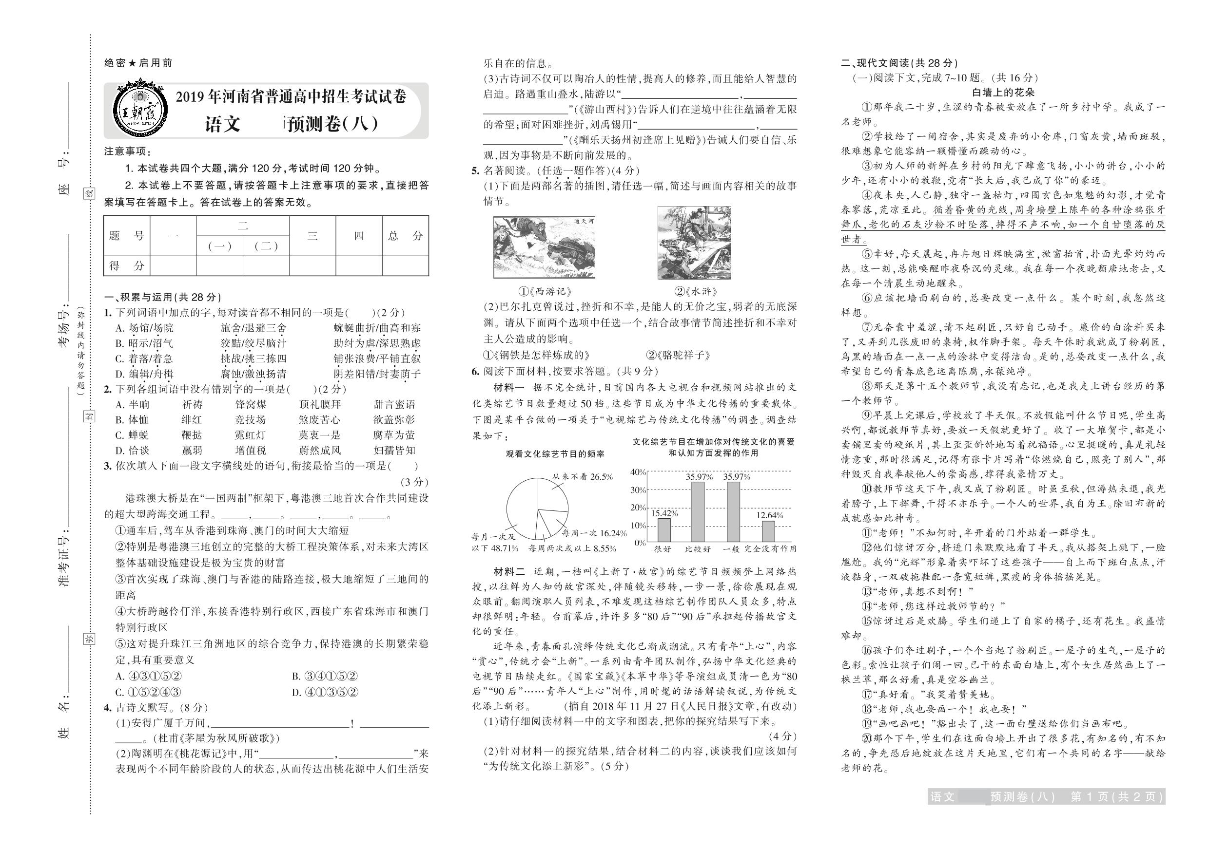 2019年河南省普通高中招生考试试卷语文·预测卷(八)