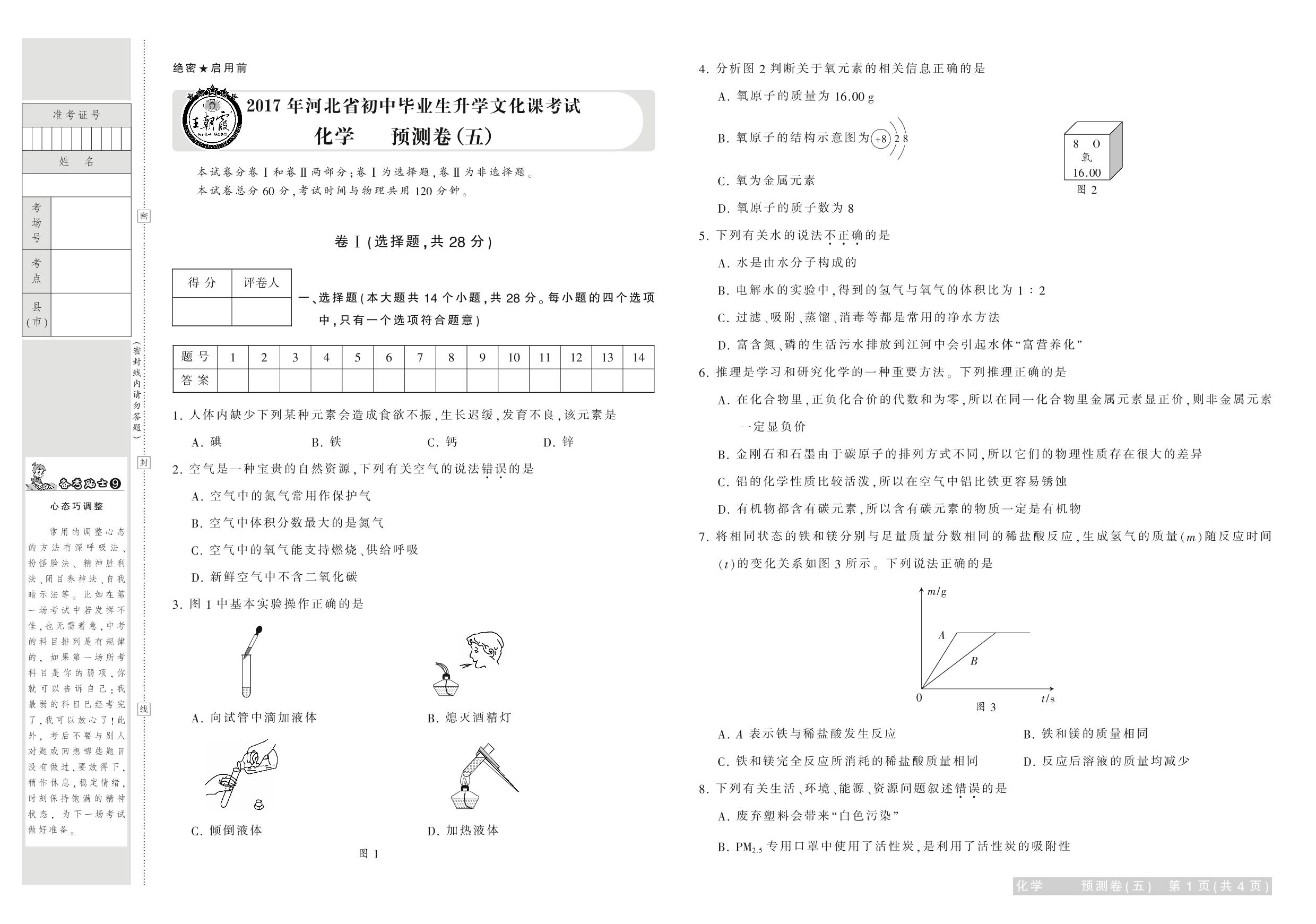 2017年河北省普通高中招生考试试卷化学·预测卷(五)