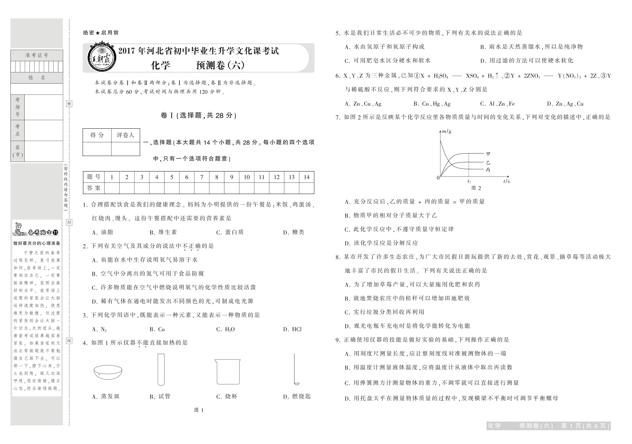 2017年河北省普通高中招生考试试卷化学·预测卷(六)