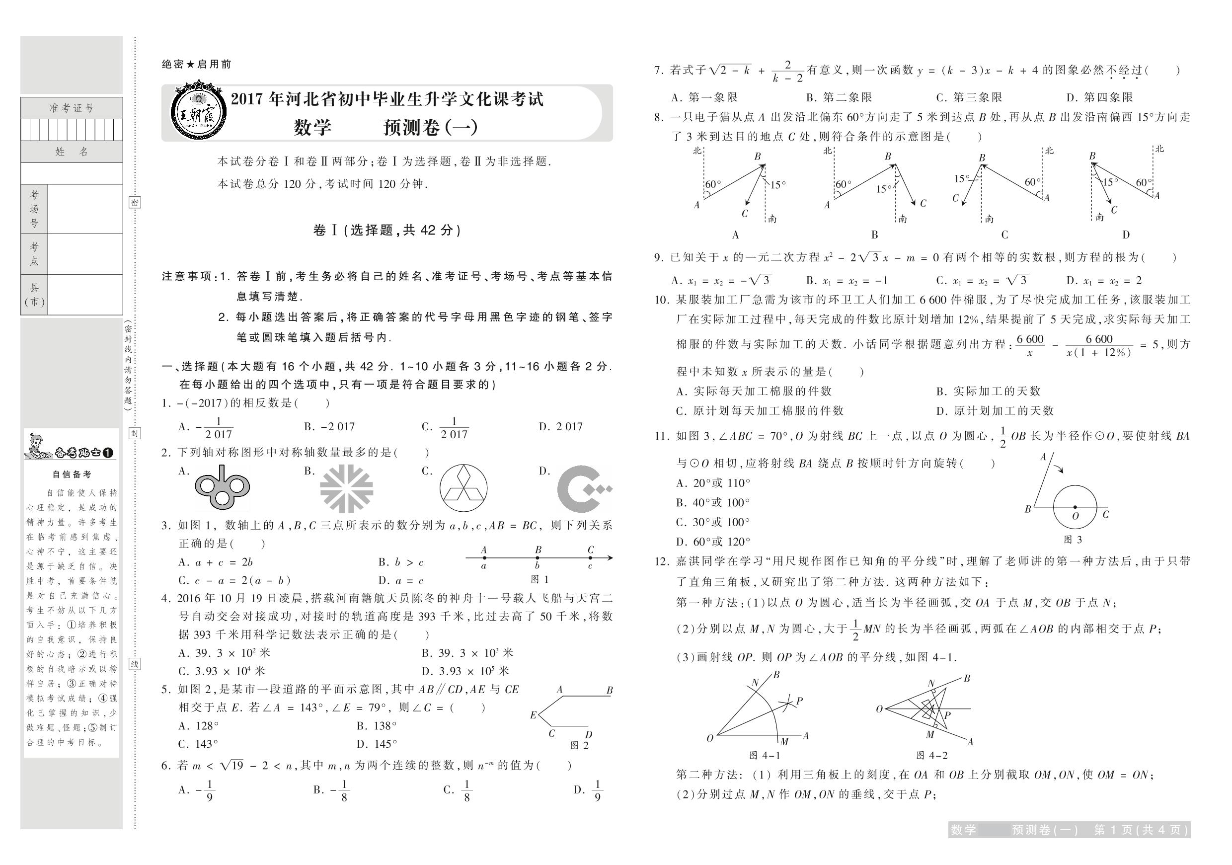 2017年河北省普通高中招生考试试卷数学·预测卷(一)