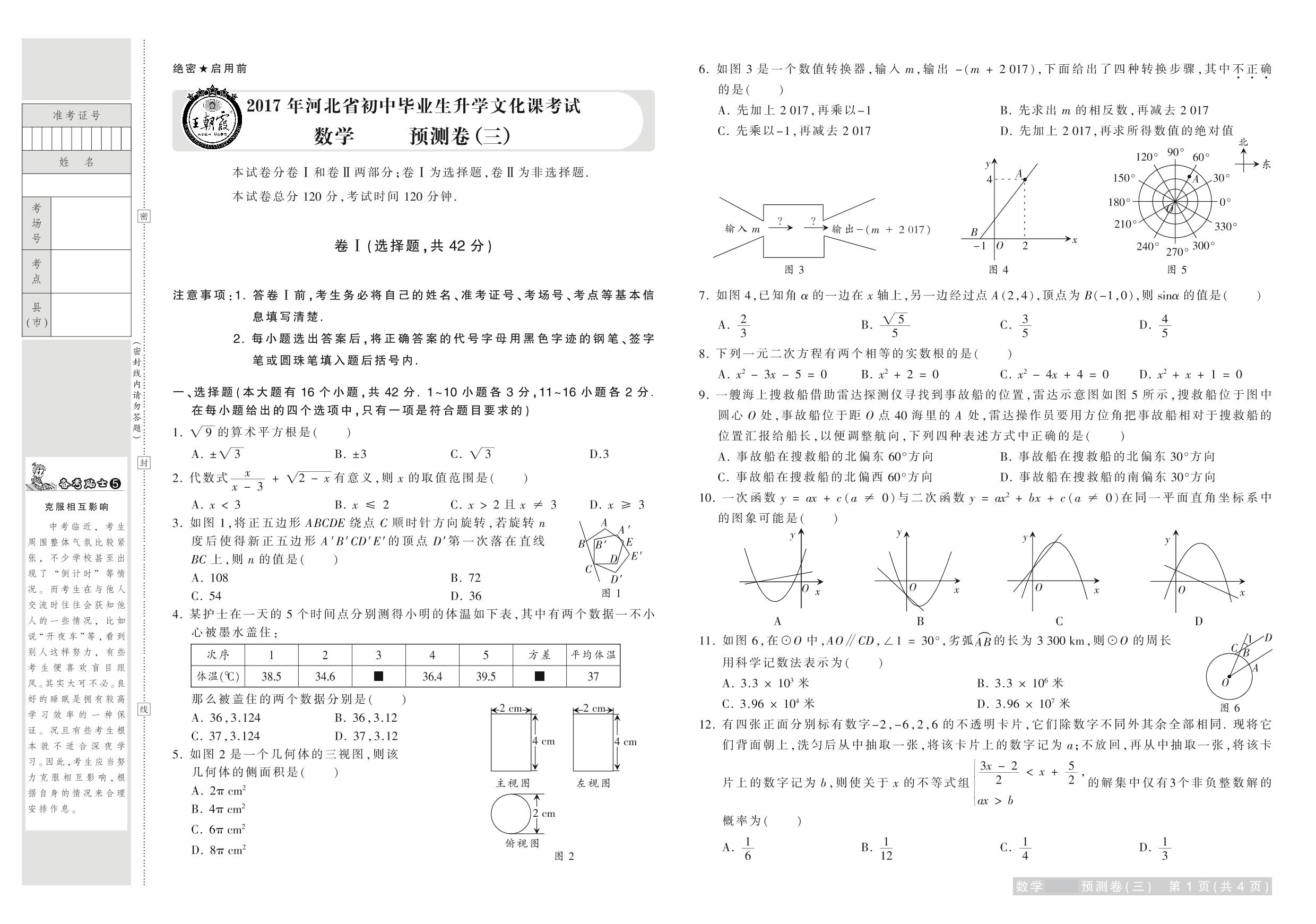 2017年河北省普通高中招生考试试卷数学·预测卷(三)