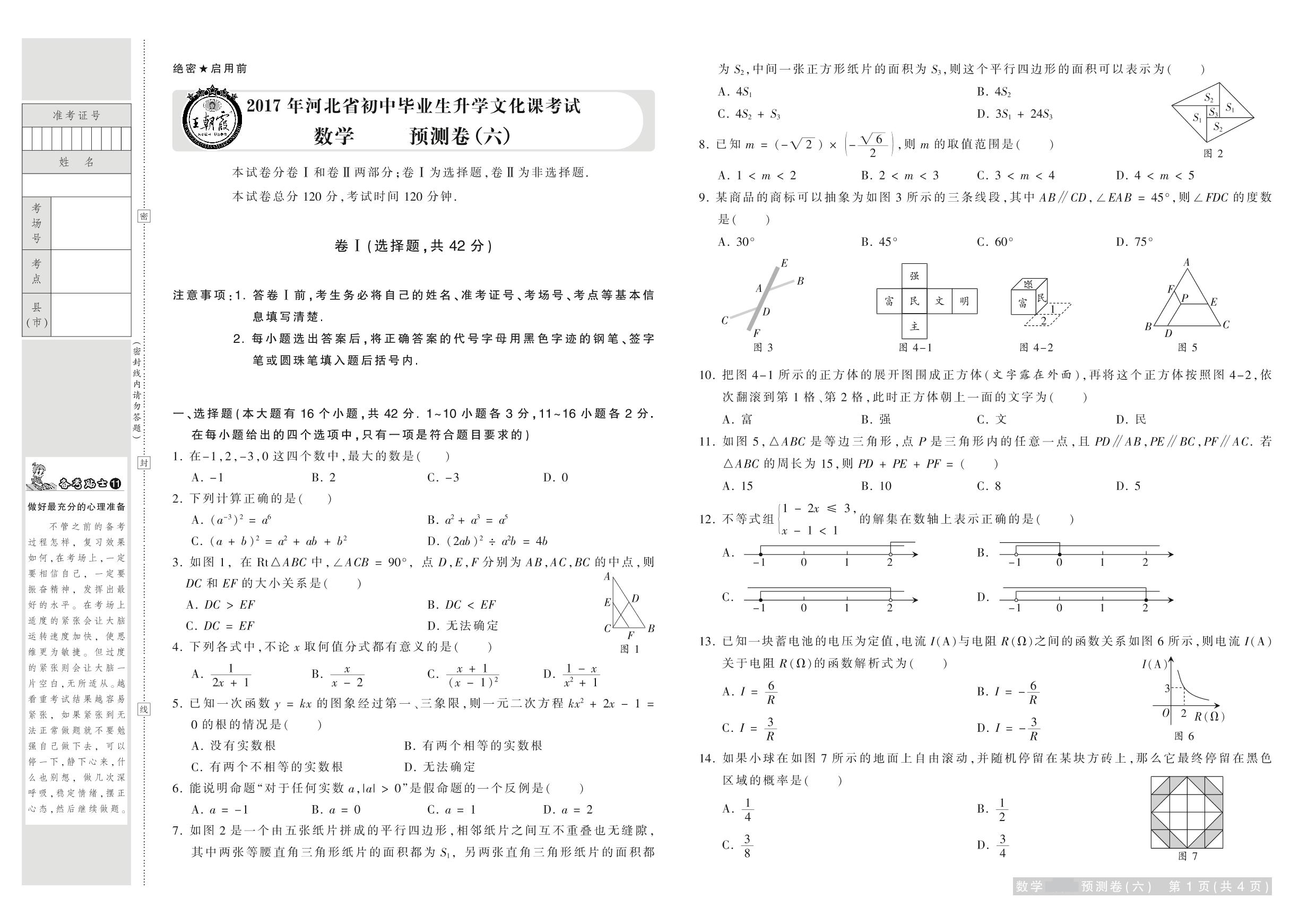 2017年河北省普通高中招生考试试卷数学·预测卷(六)
