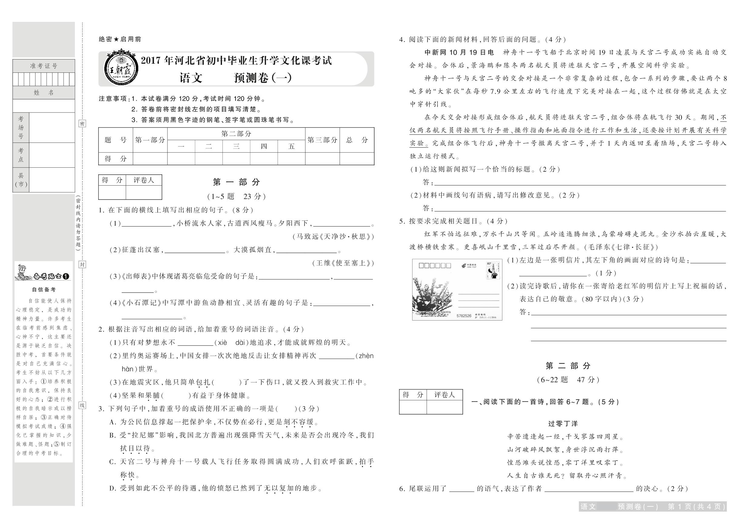 2017年河北省普通高中招生考试试卷语文·预测卷(一)