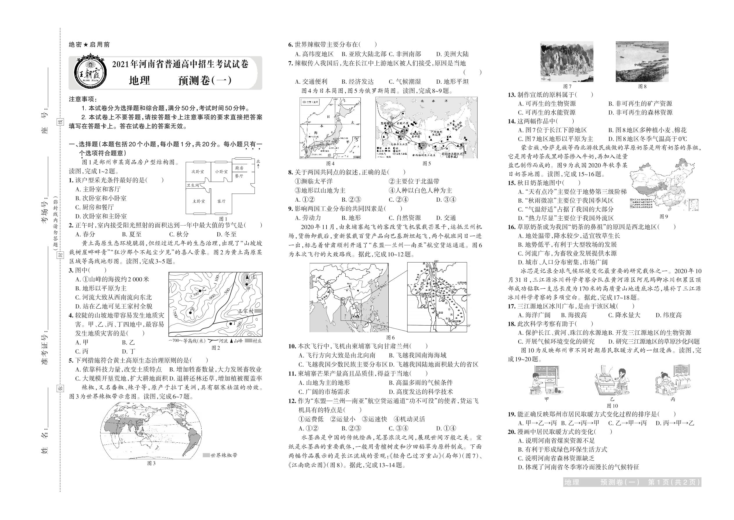 2021年河南省普通高中招生考试试卷地理·预测卷(一)