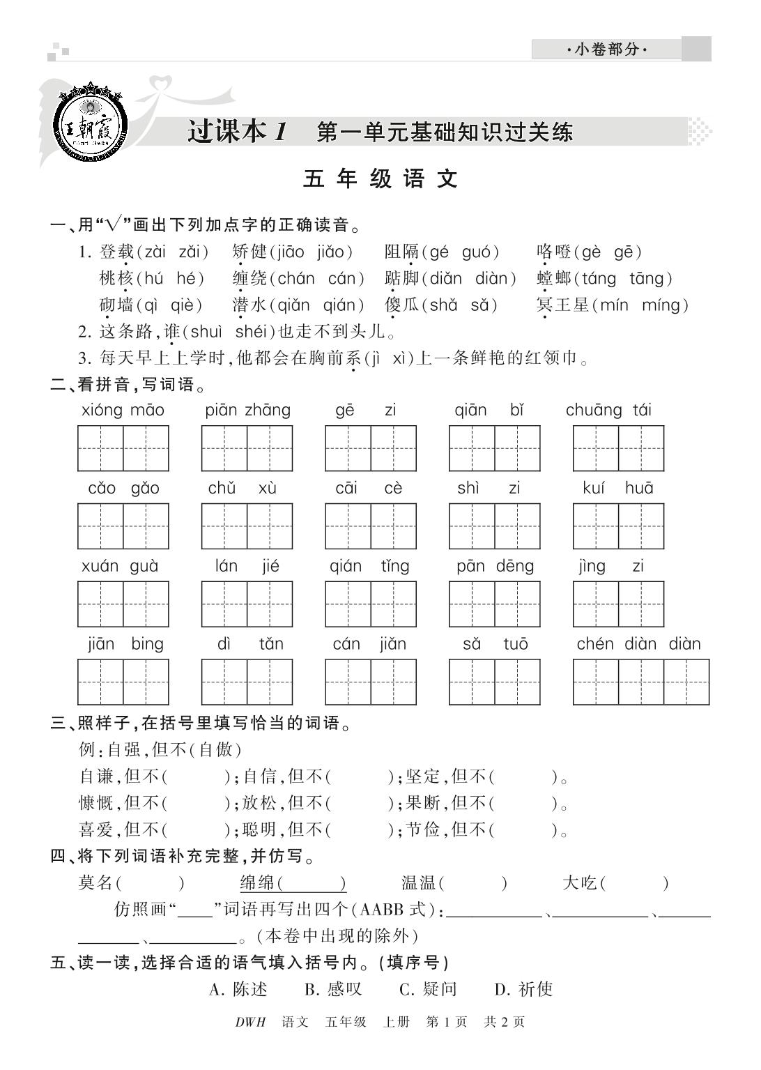 王朝霞期末过课本五年级上册语文(鄂教版)【0】