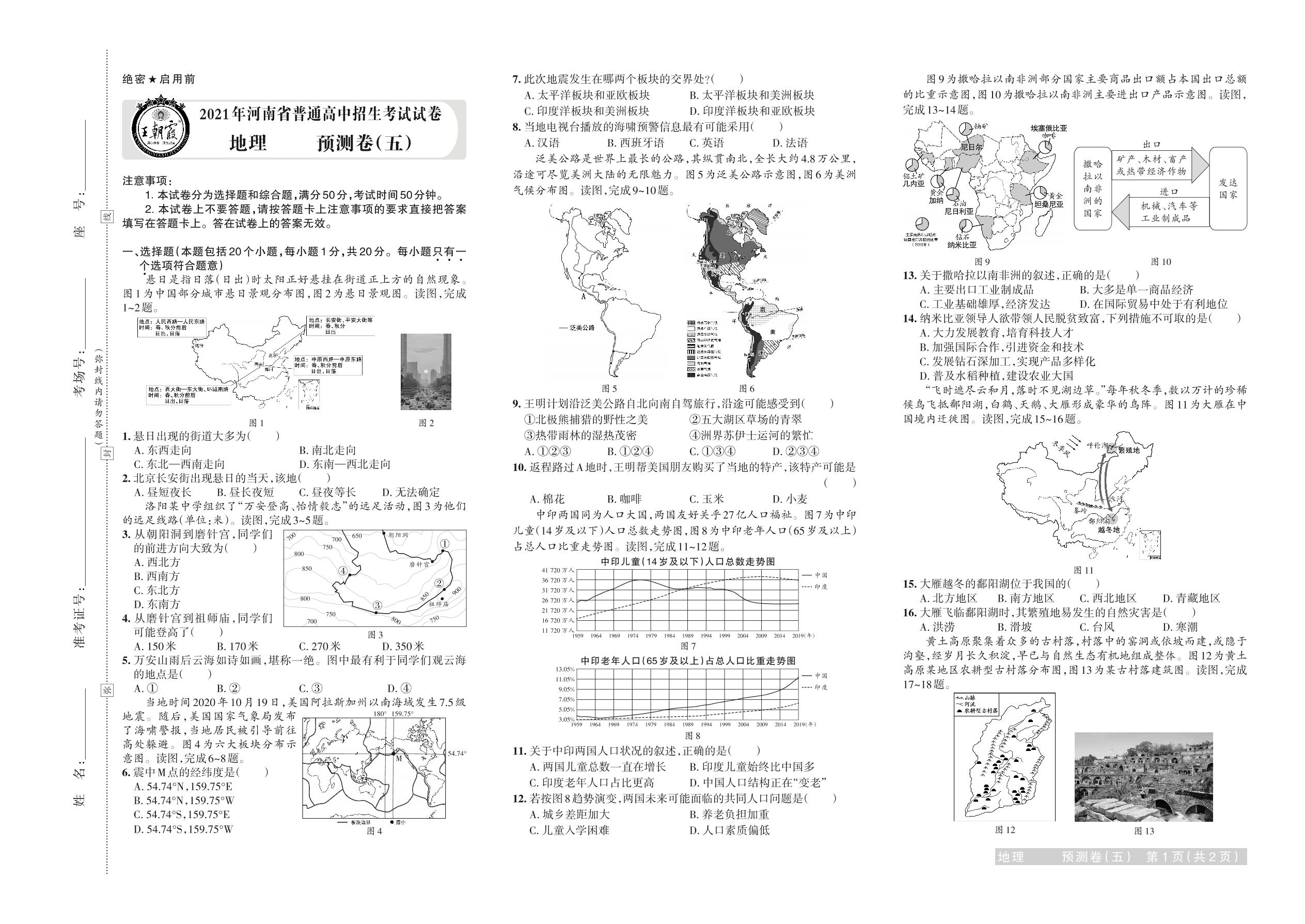 2021年河南省普通高中招生考试试卷地理·预测卷(五)