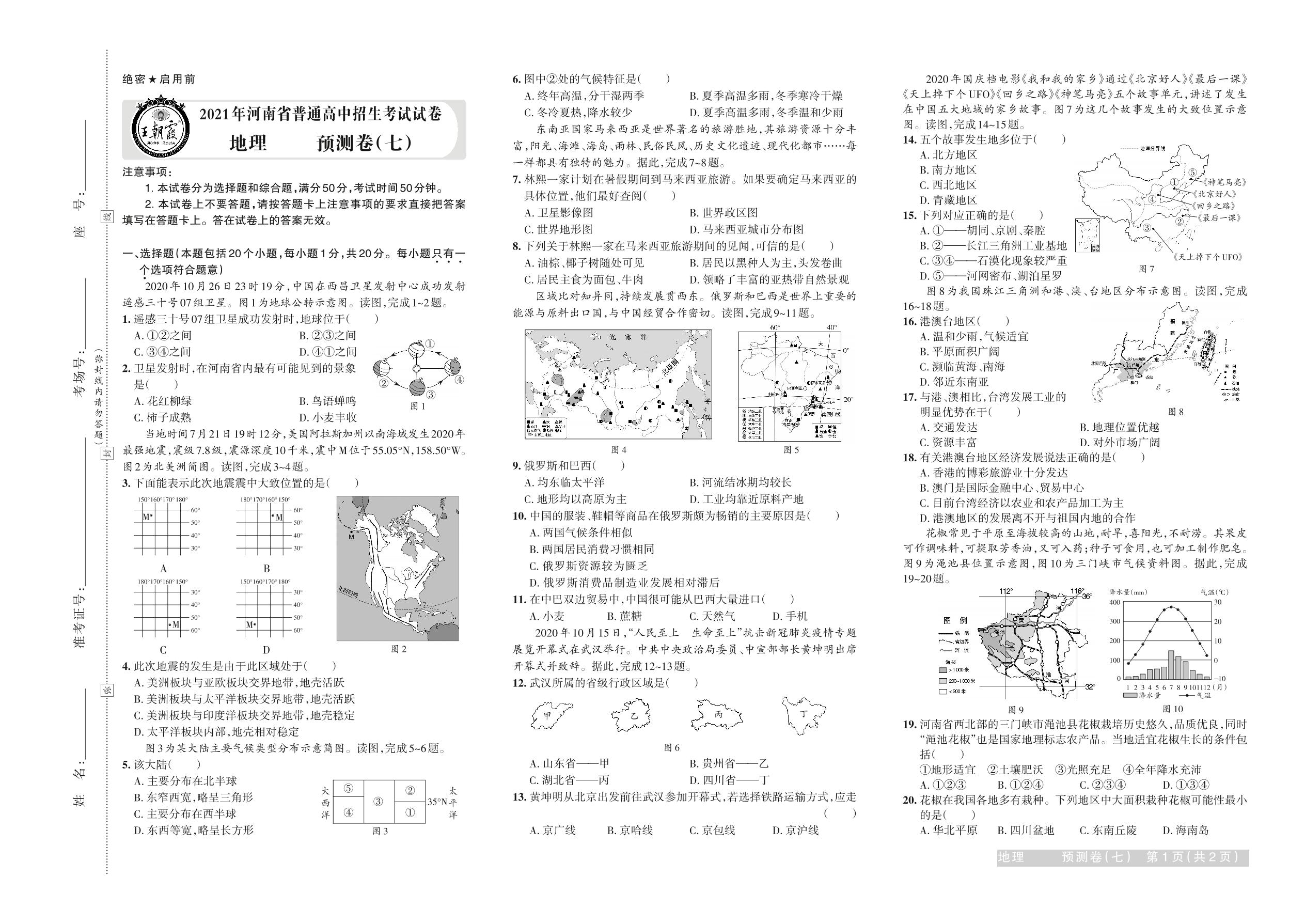 2021年河南省普通高中招生考试试卷地理·预测卷(七)