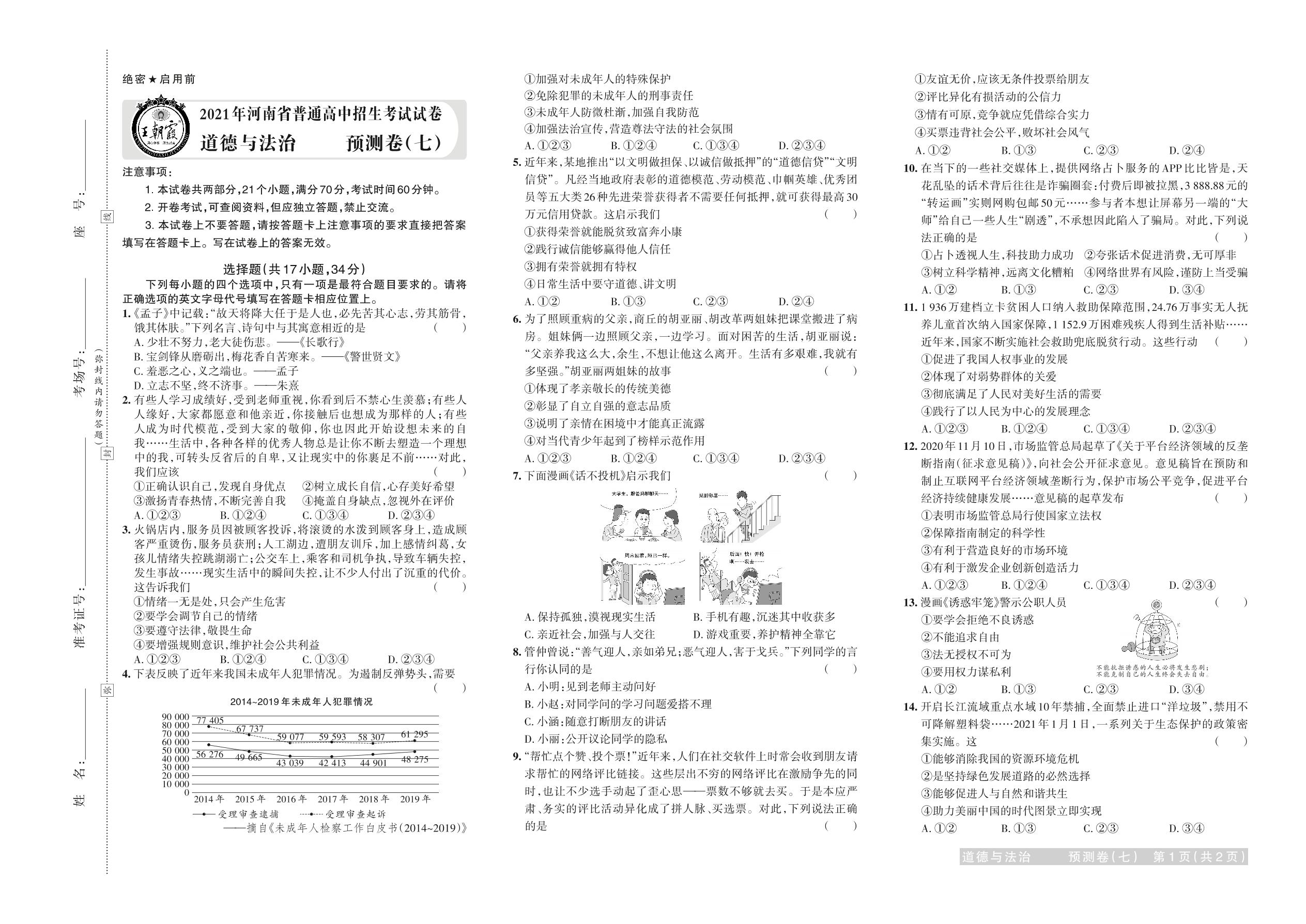 2021年河南省普通高中招生考试试卷道德与法治·预测卷(七)
