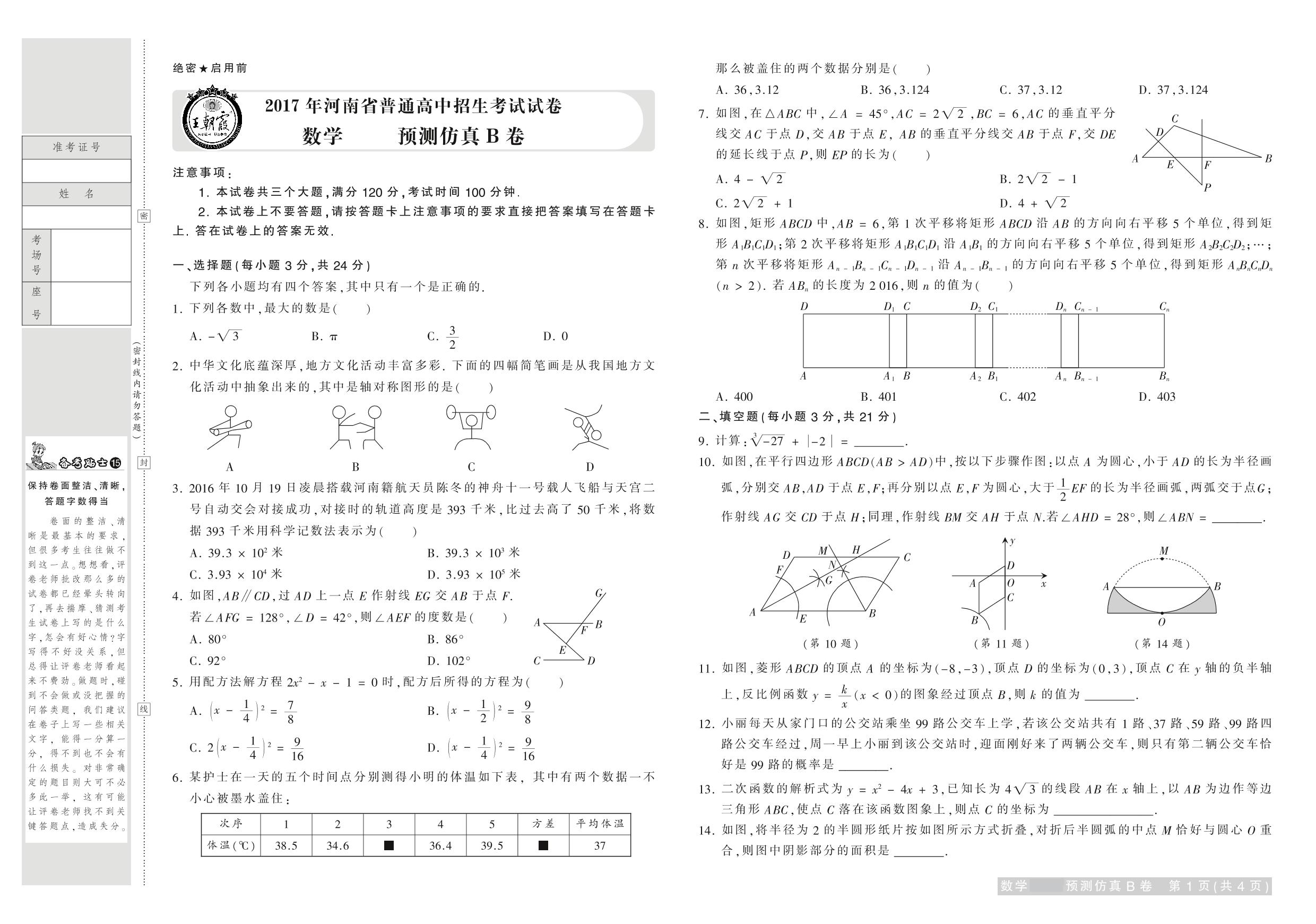 2017年河南省普通高中招生考试试卷数学·预测仿真B卷