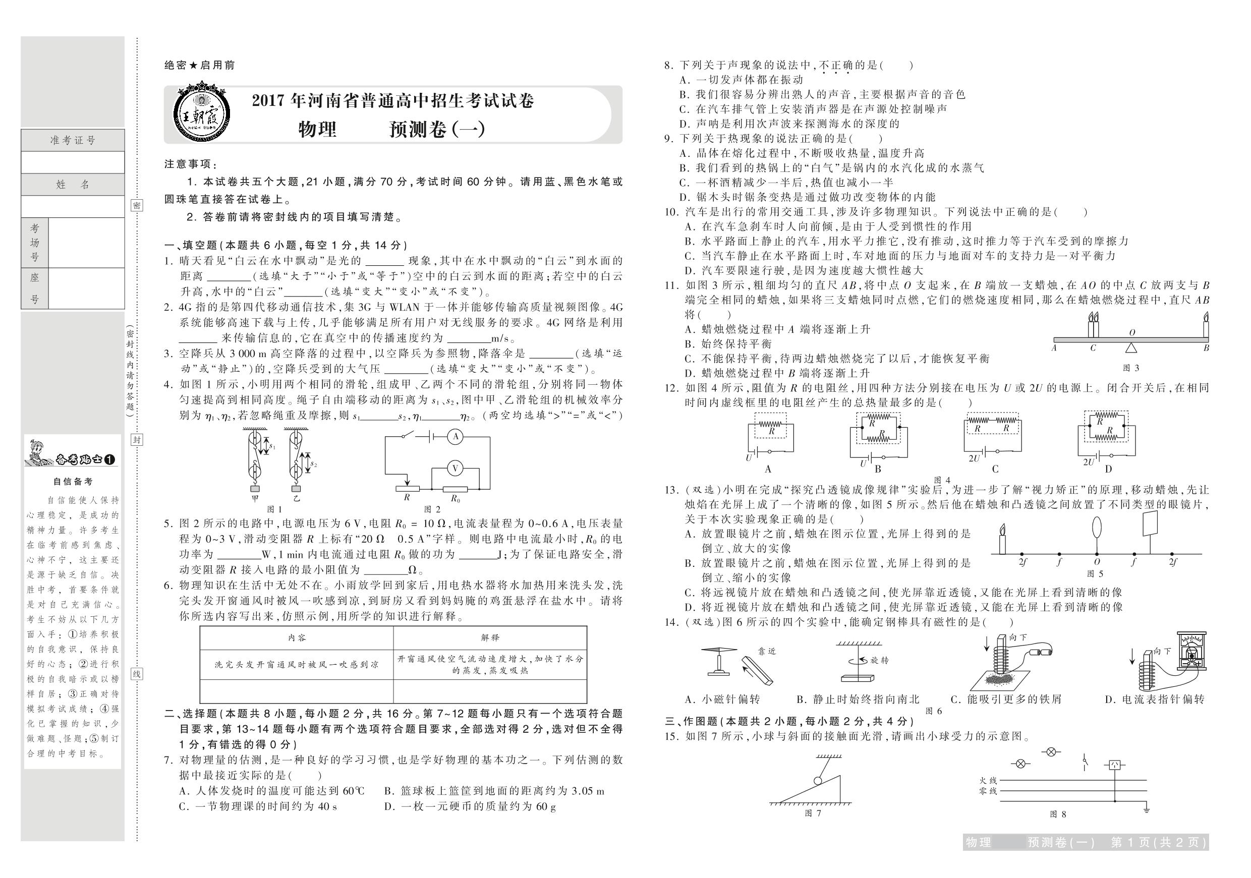 2017年河南省普通高中招生考试试卷物理·预测卷(一)