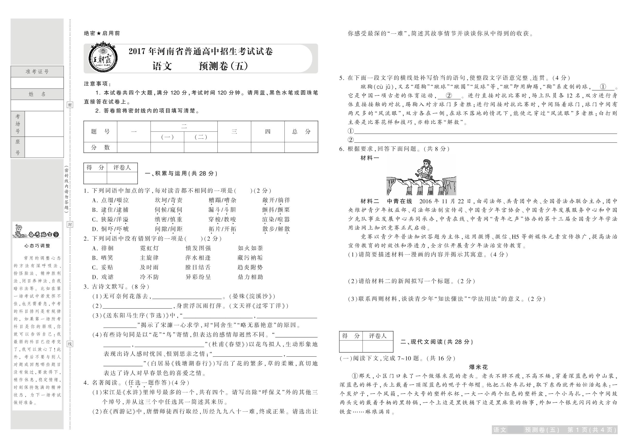 2017年河南省普通高中招生考试试卷语文·预测卷(五)
