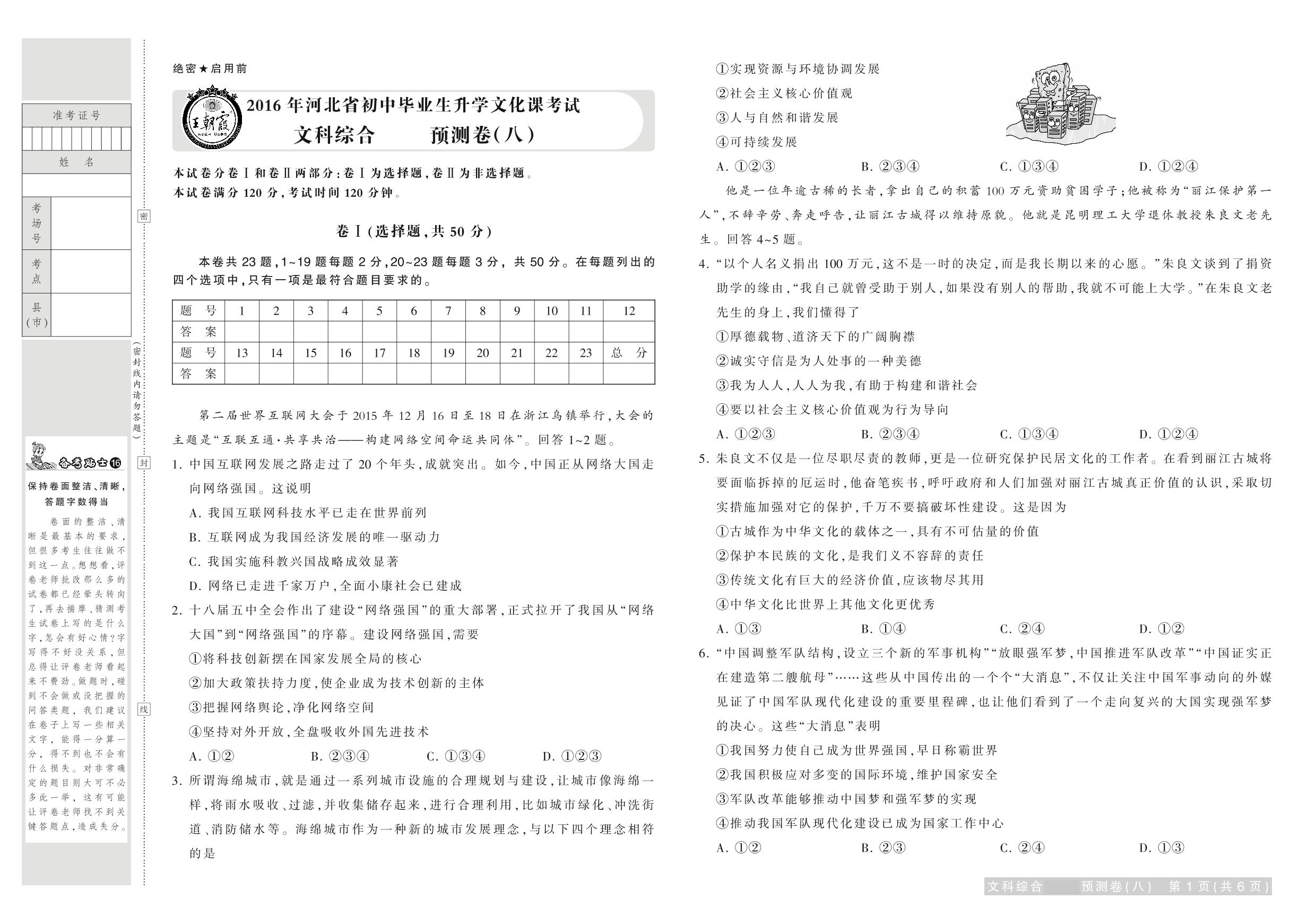 2016年河北省普通高中招生考试试卷道德与法治·预测卷(八)