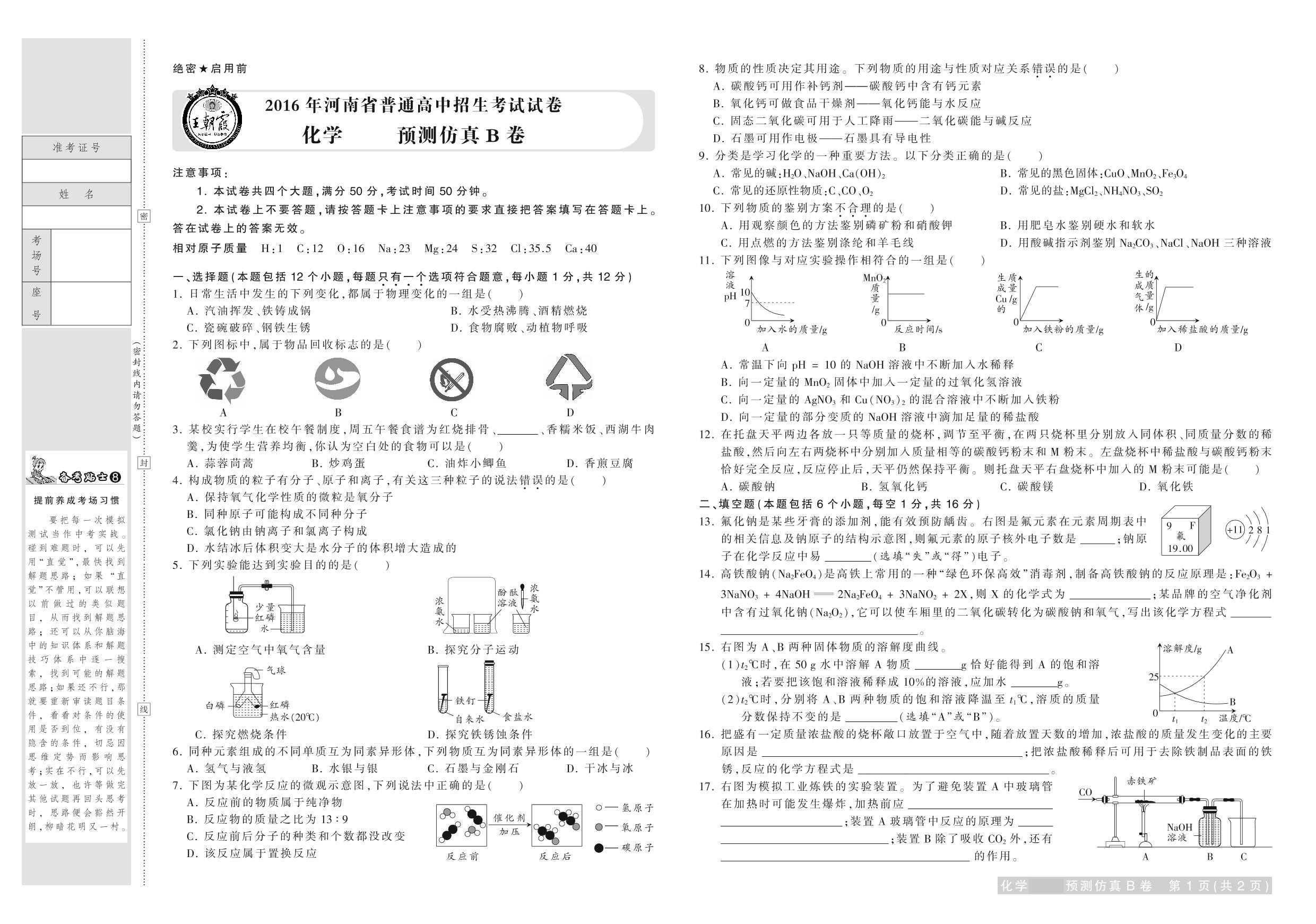 2016年河南省普通高中招生考试试卷化学·预测仿真B卷