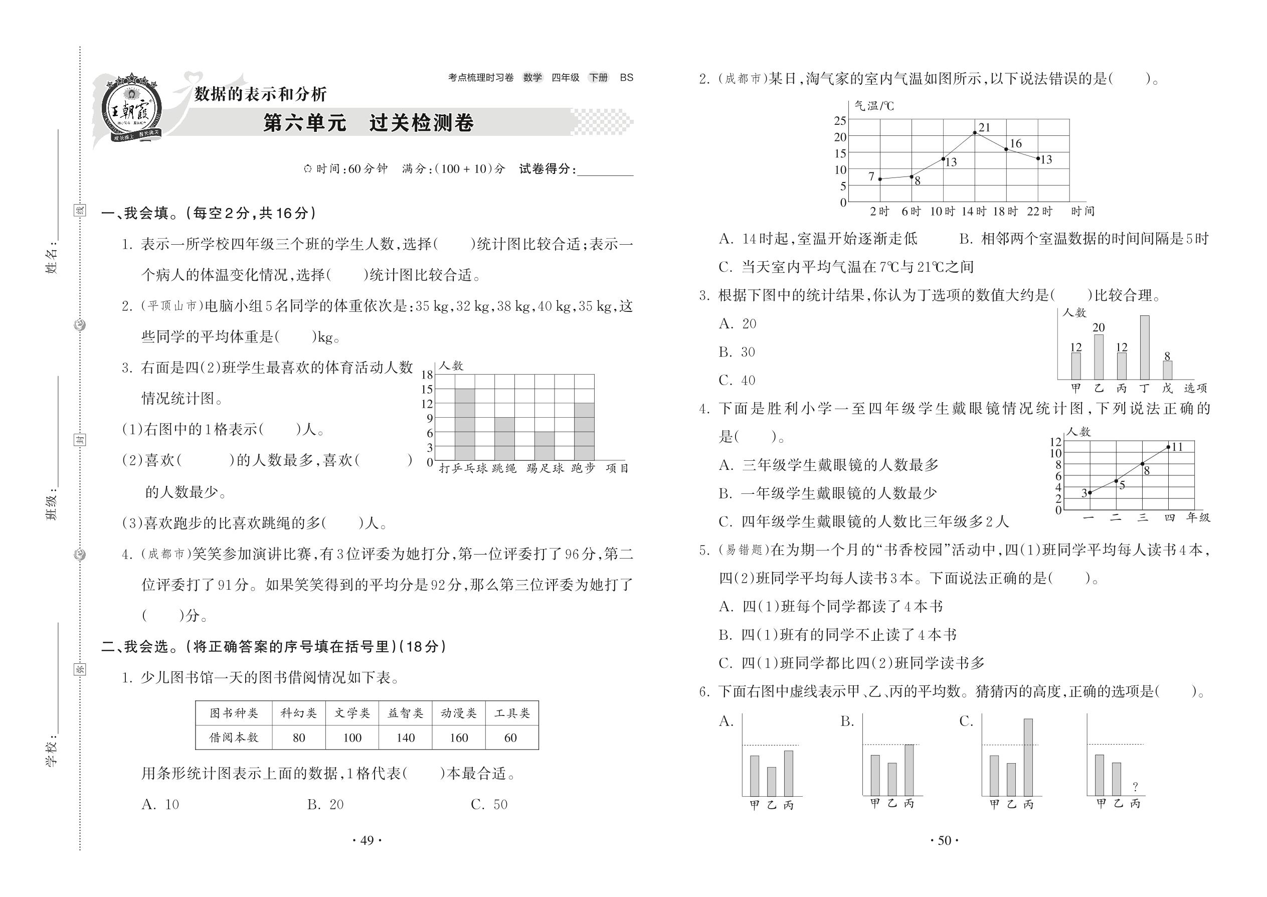2022下册四年级数学北师版 第六单元 过关检测卷