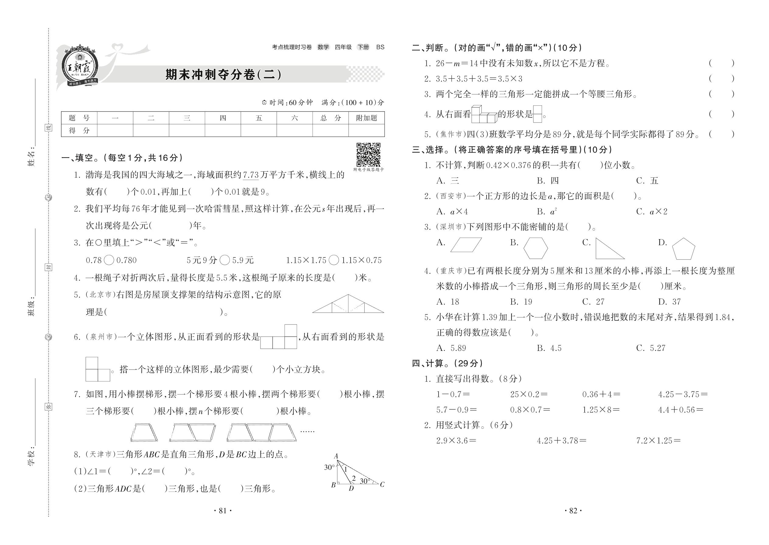 四年级数学北师版下册期末卷