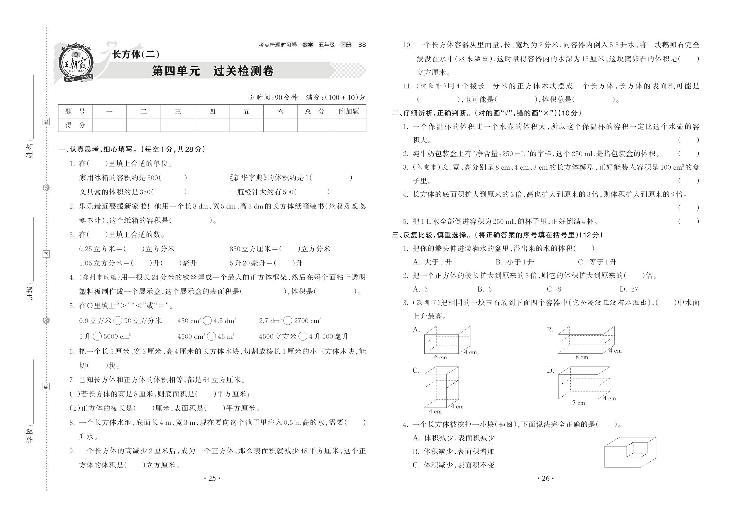 2022下册五年级数学北师版 第四单元 过关检测卷