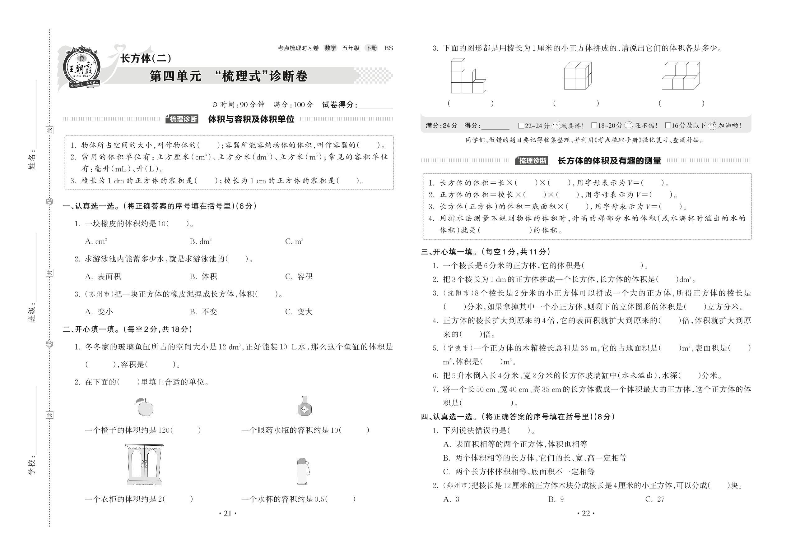 2022下册五年级数学北师版 第四单元 “梳理式”诊断卷