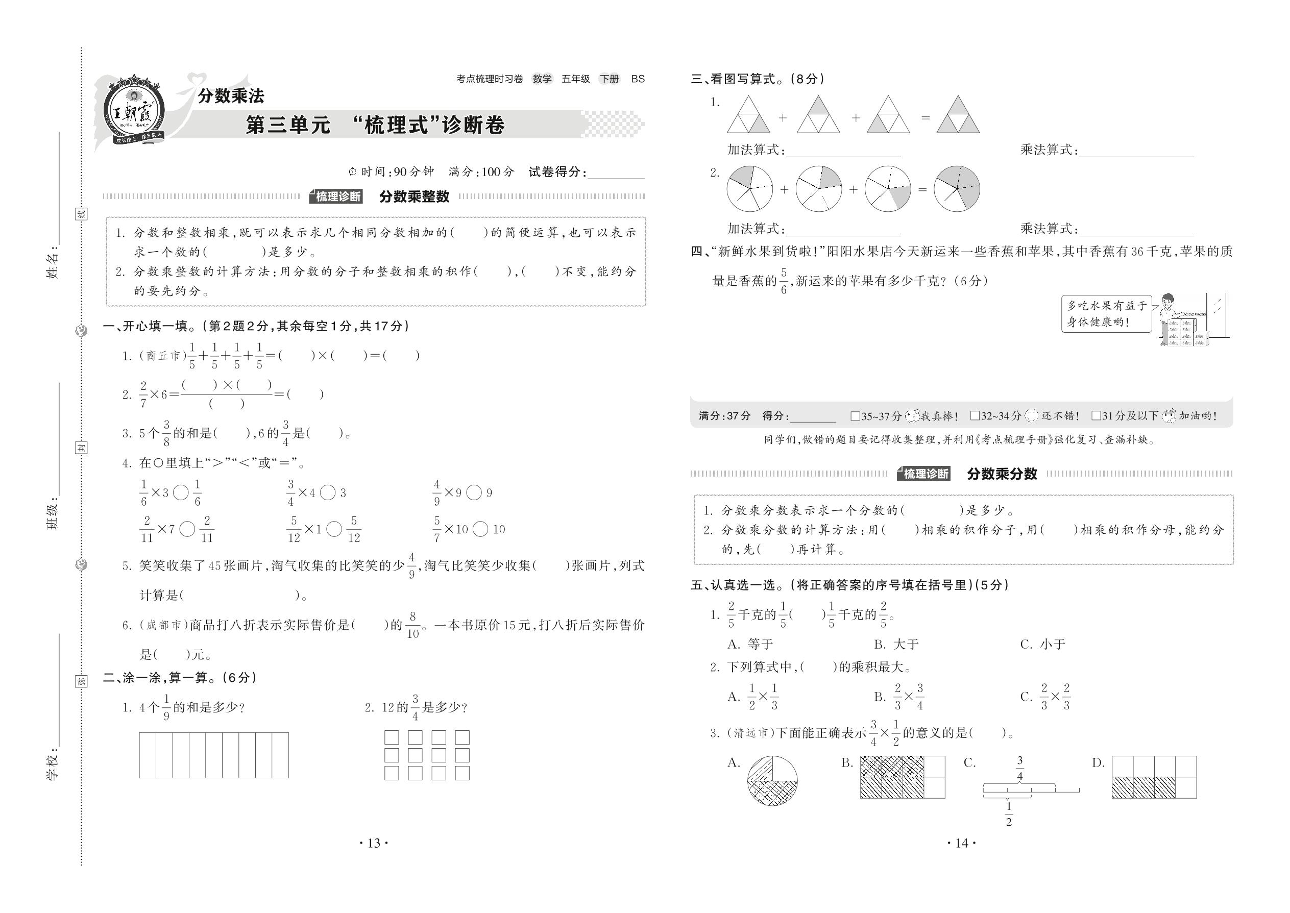 2022下册五年级数学北师版 第三单元 “梳理式”诊断卷