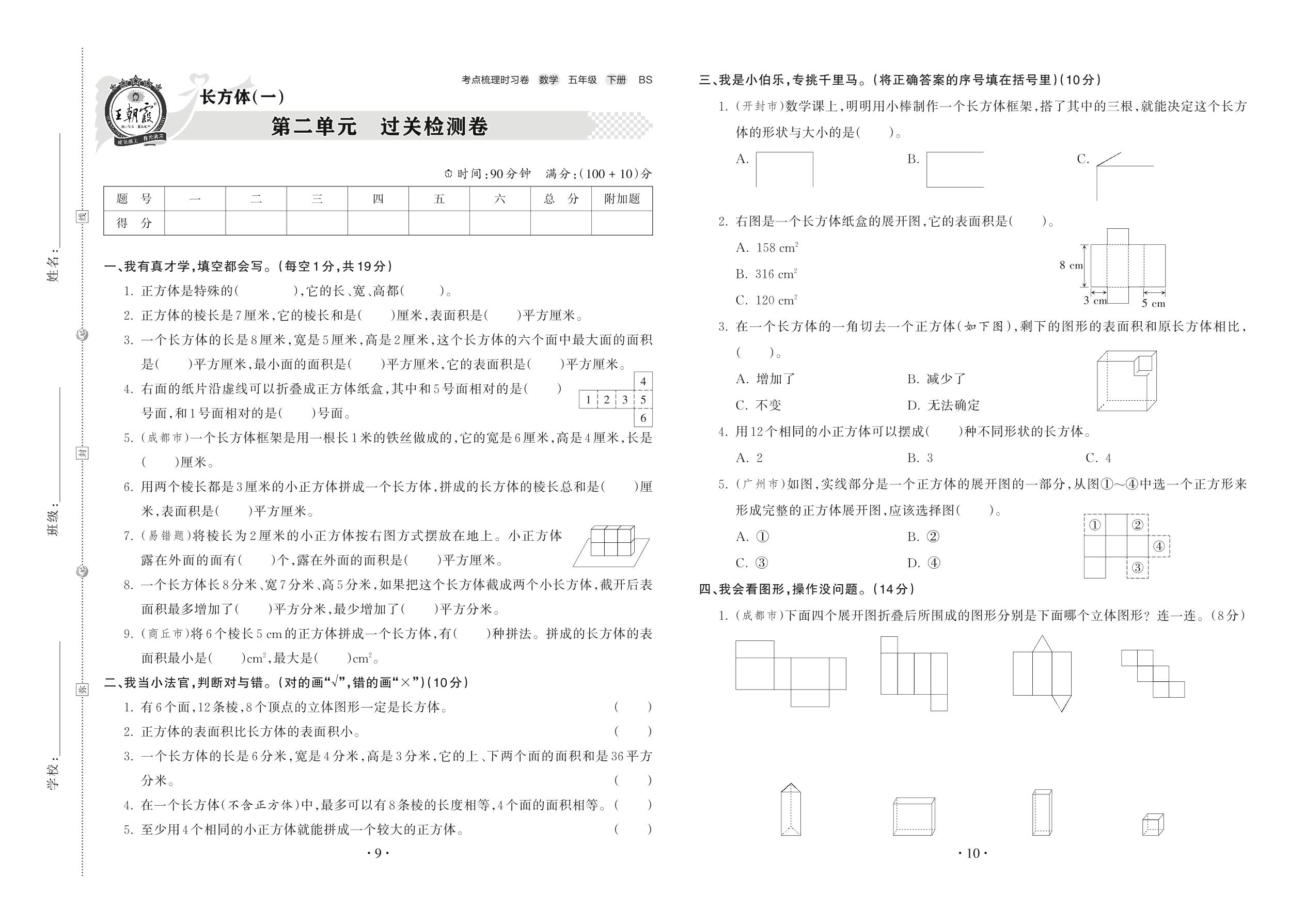 2022下册五年级数学北师版 第二单元 过关检测卷