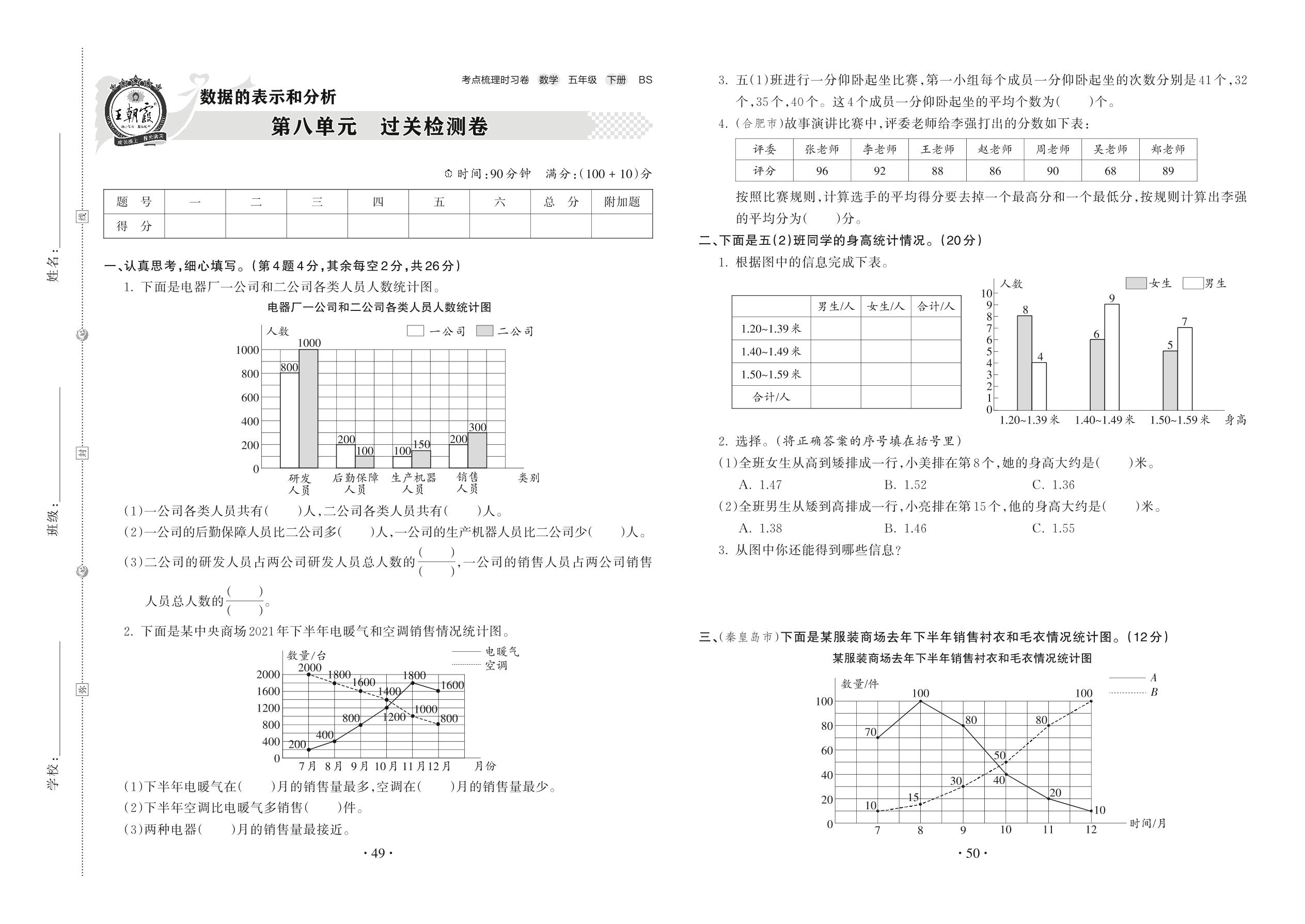 2022下册五年级数学北师版 第八单元 过关检测卷
