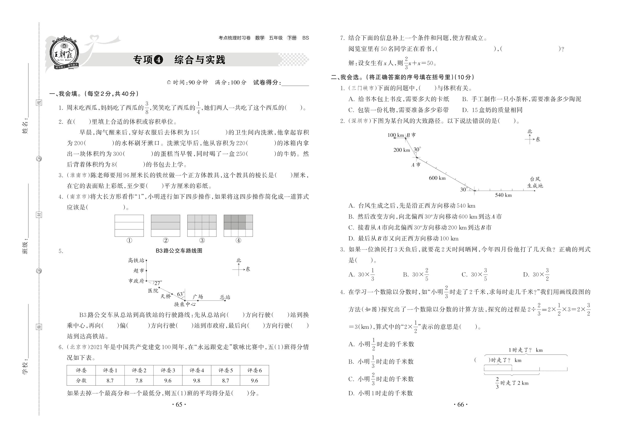 2022下册五年级数学北师版 专项4 综合与实践