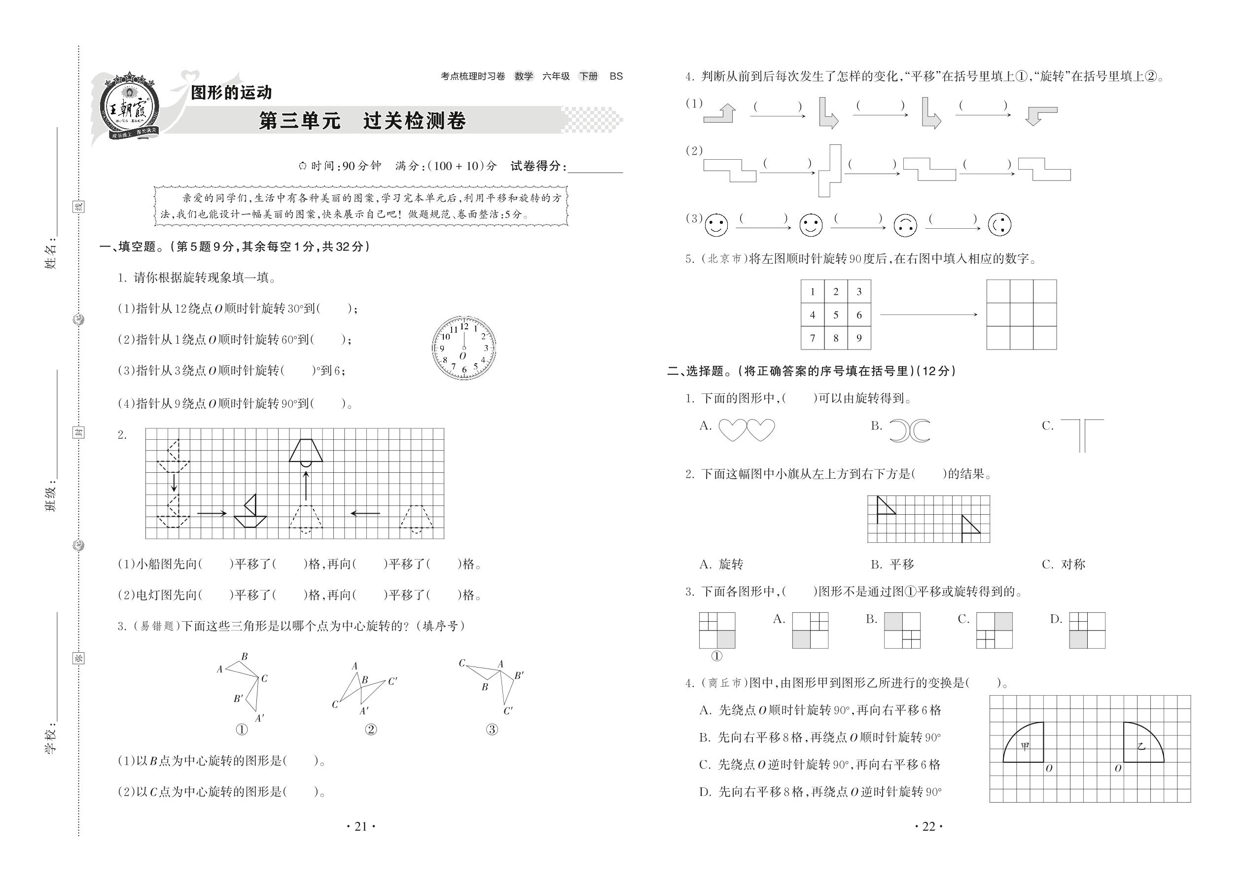 2022下册六年级数学北师版 第三单元 过关检测卷
