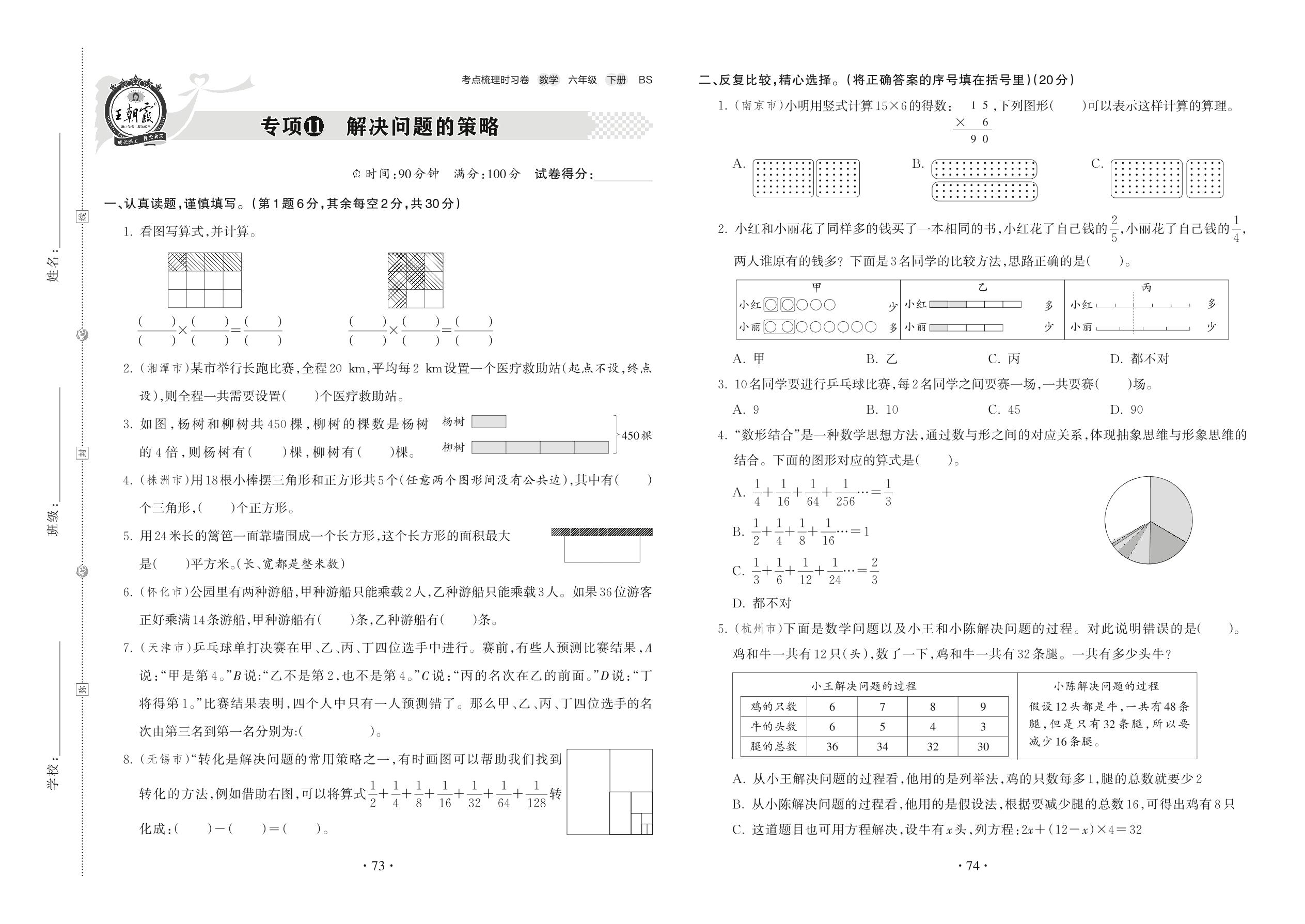 2022下册六年级数学北师版 专项11 解决问题的策略