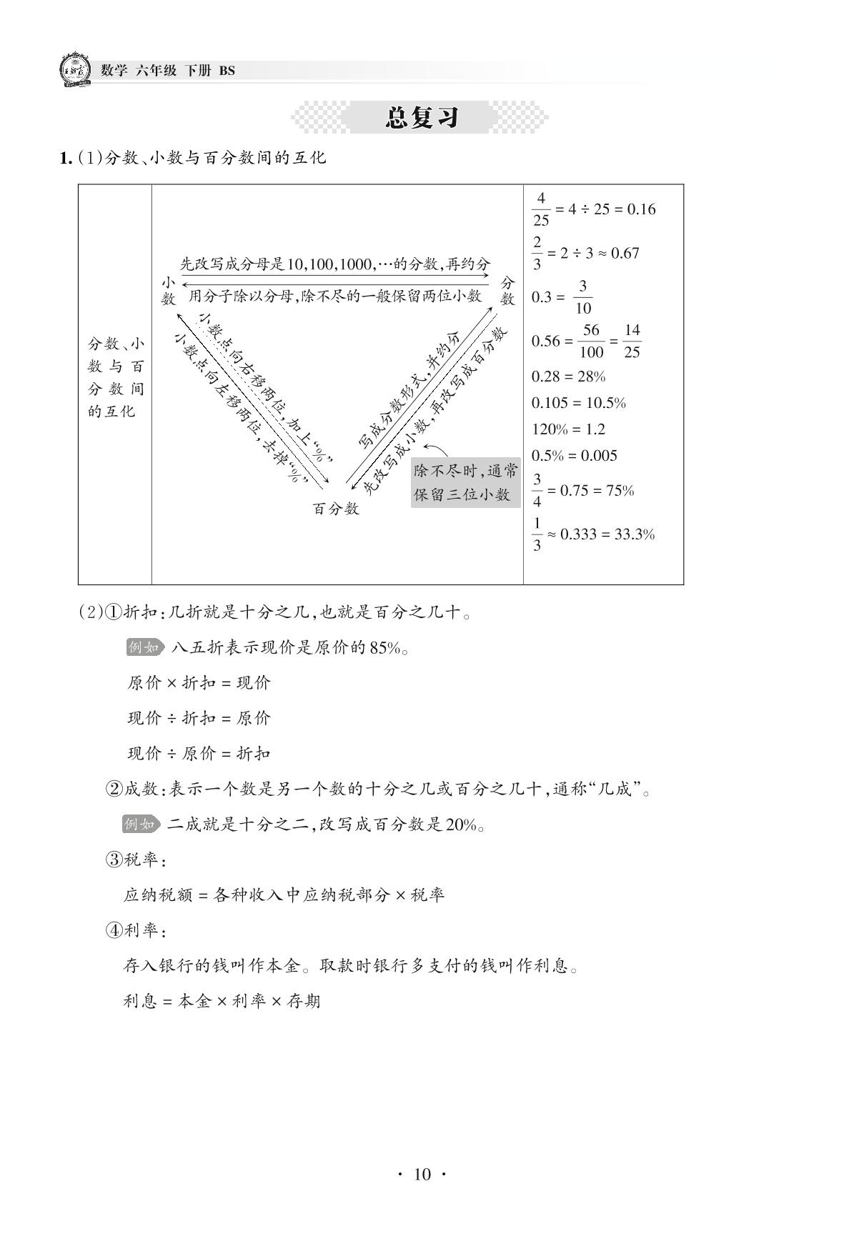 2022下册六年级数学北师版 考点梳理手册——总复习