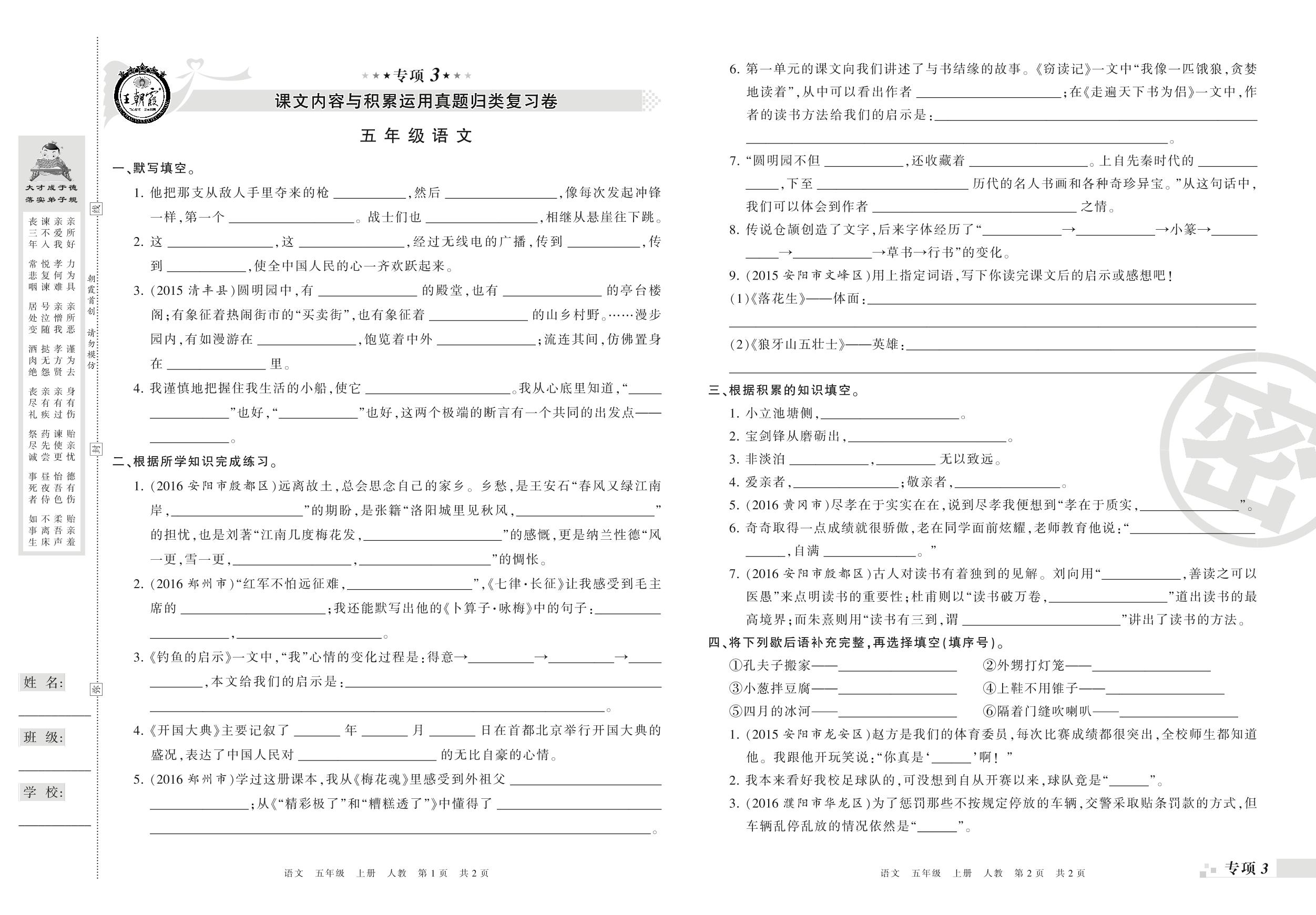 五年级语文人教版上册专项卷