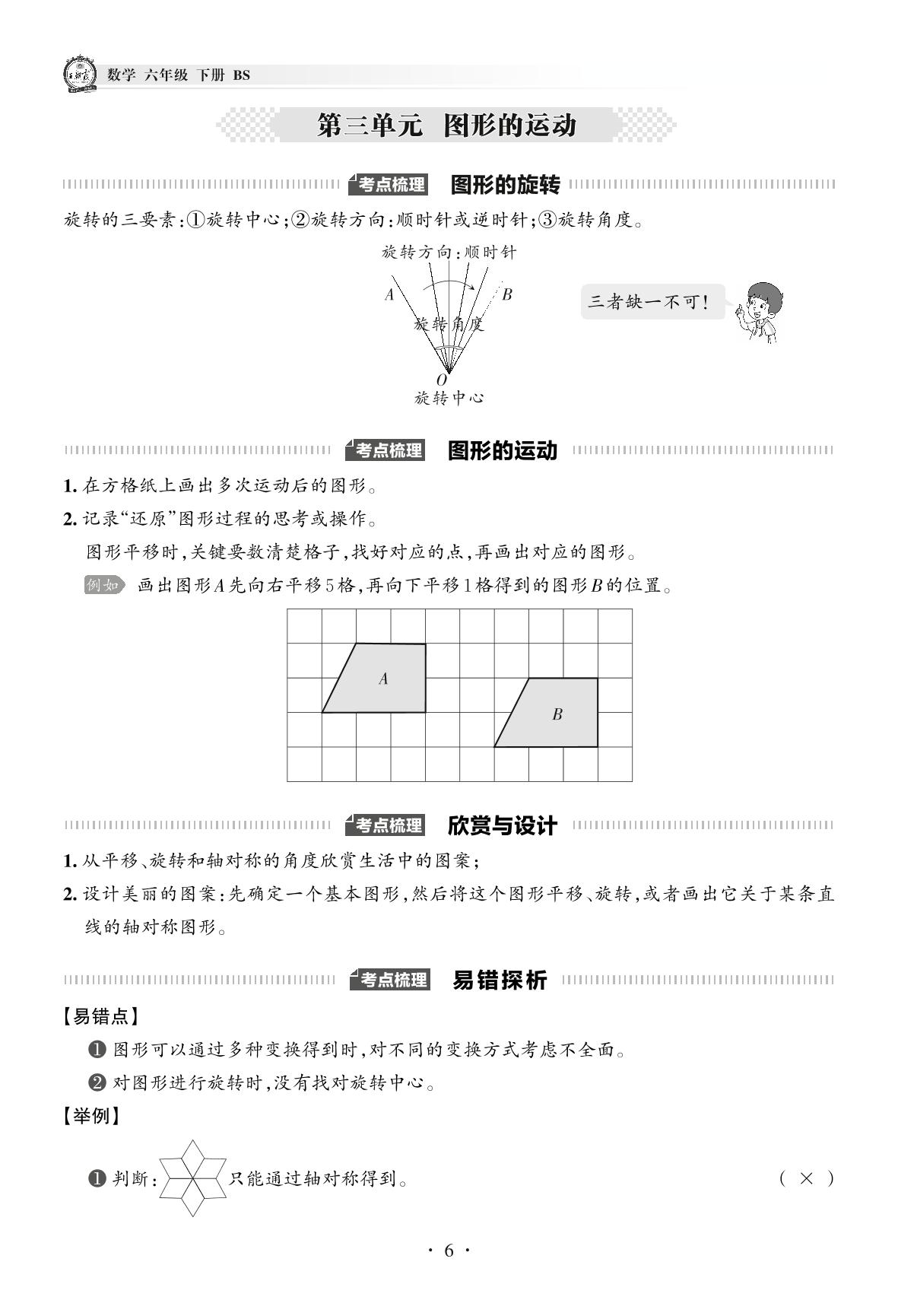 2022下册六年级数学北师版 考点梳理手册——第三单元 图形的运动