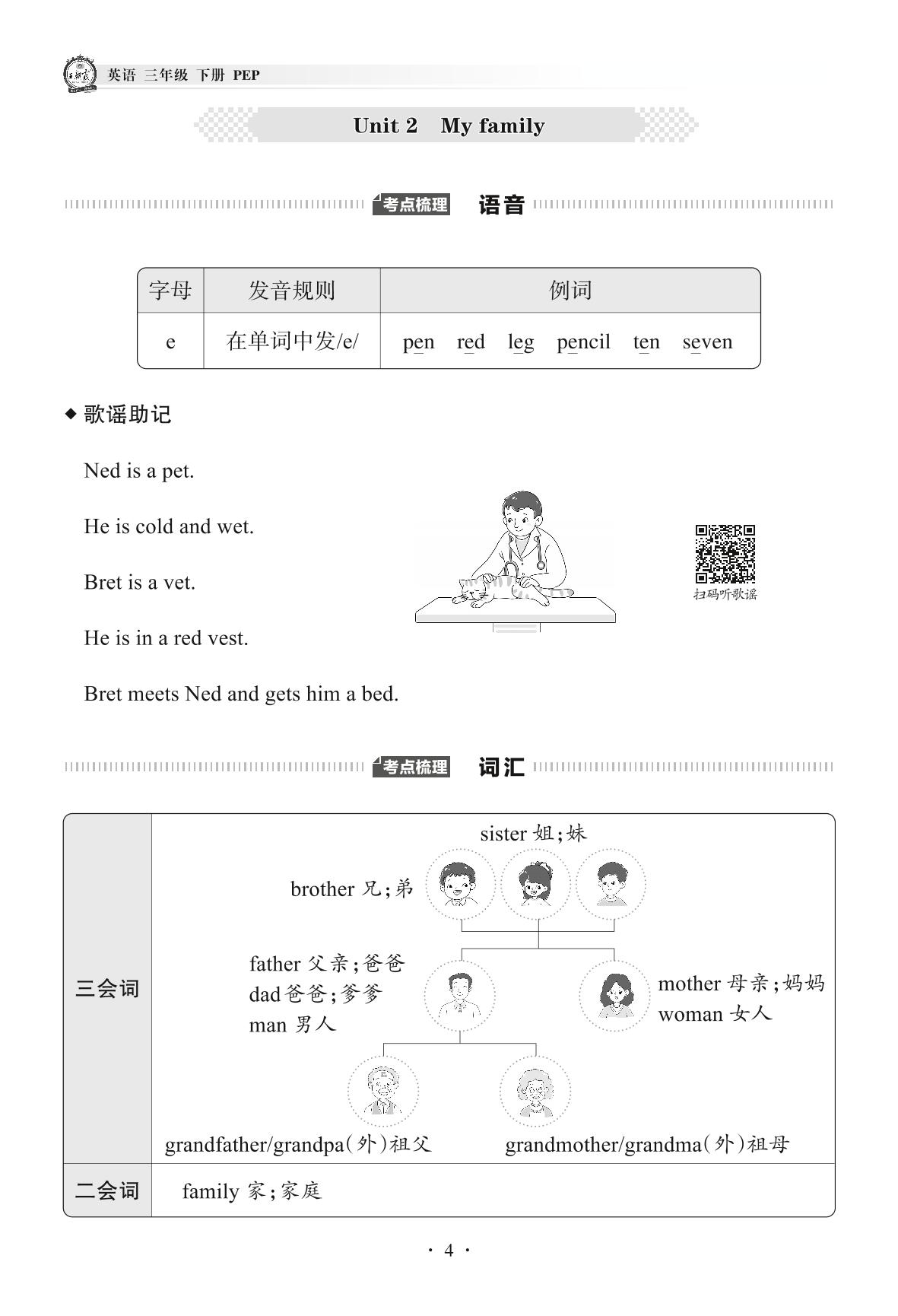 2022下册三年级英语人教PEP版 考点梳理手册——Unit 2 My family