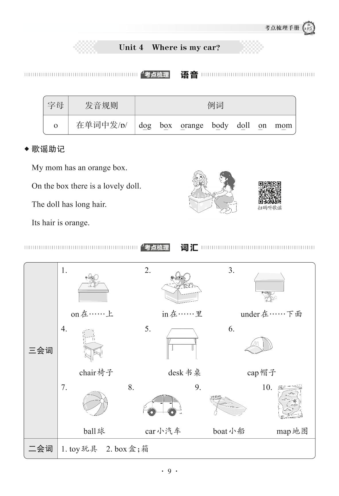 2022下册三年级英语人教PEP版 考点梳理手册——Unit 4 Where is my car?